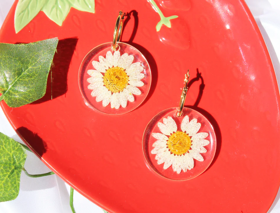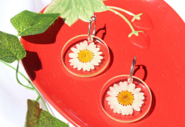 White Encapsulated Daisies Earrings