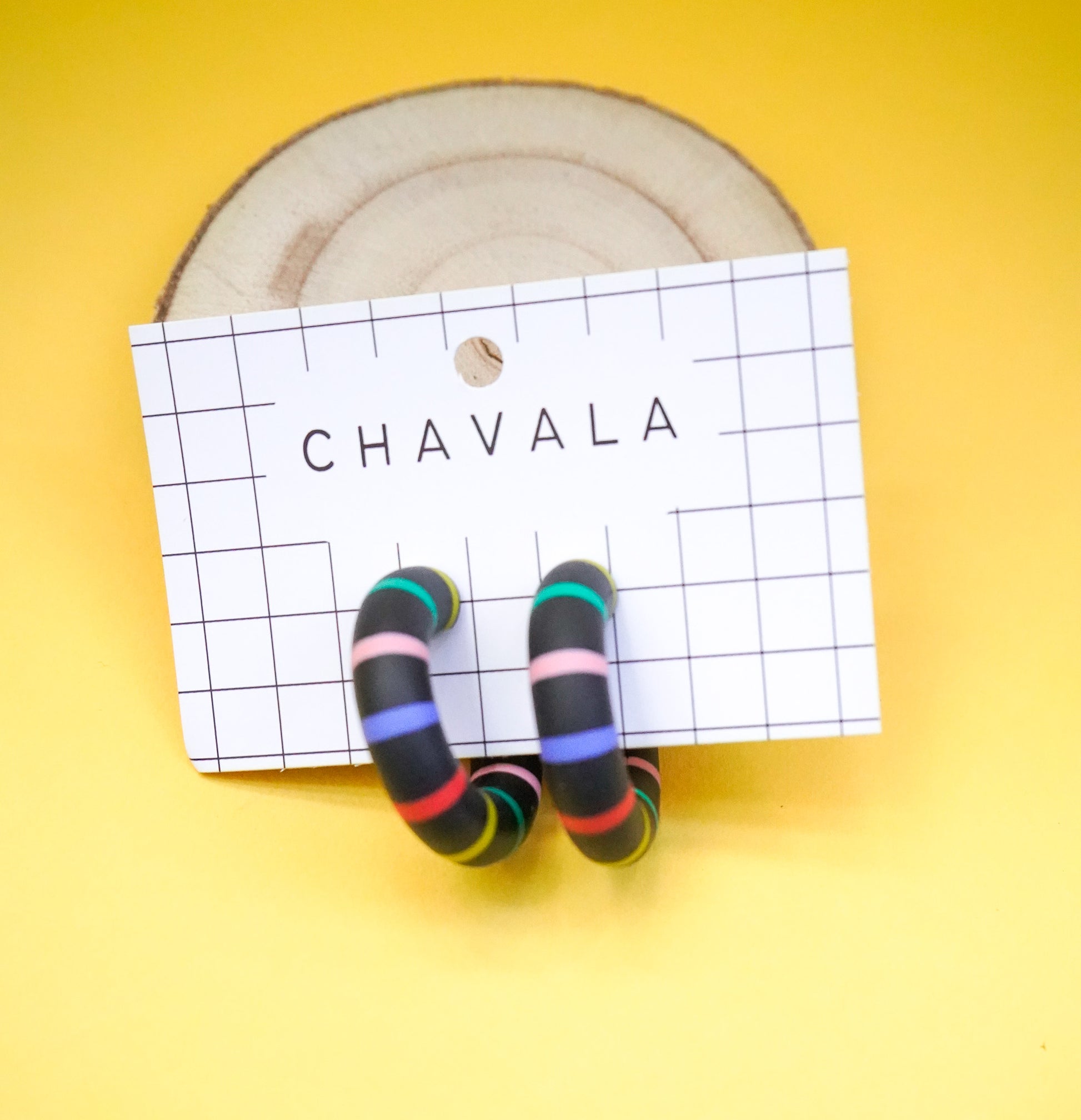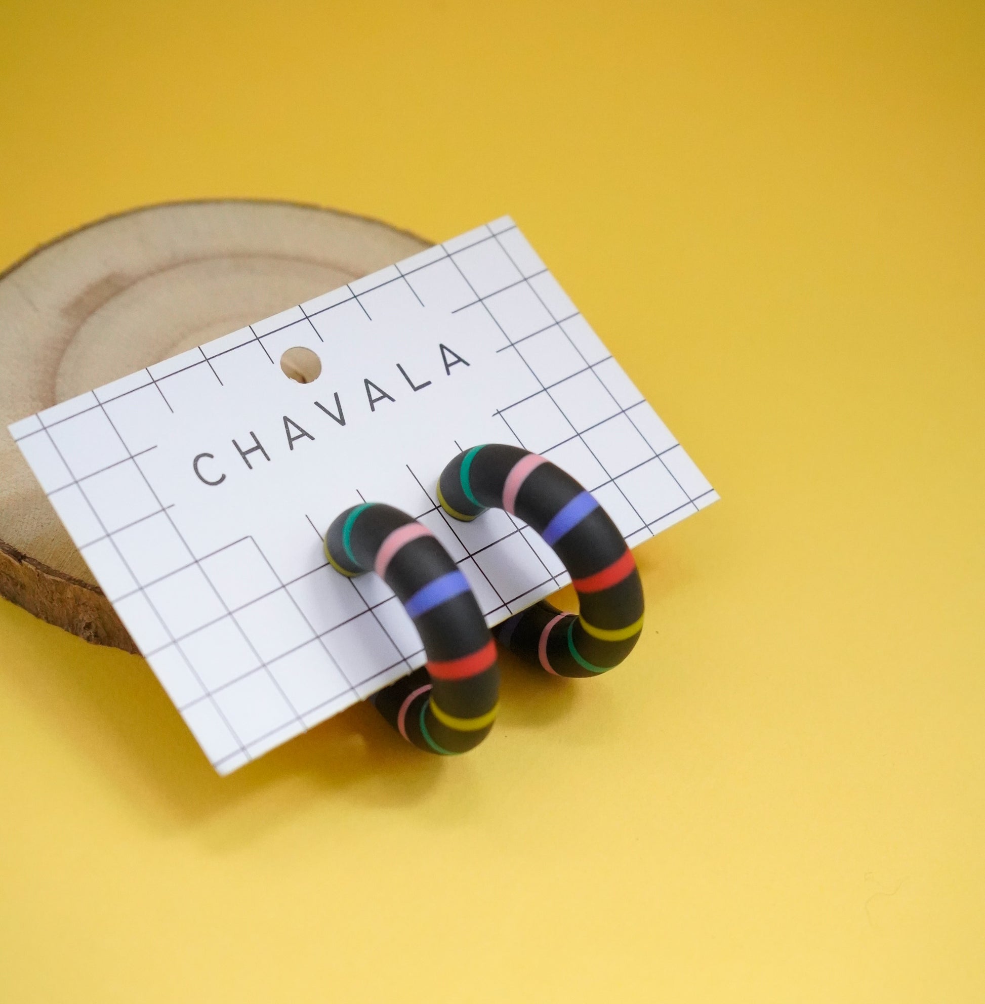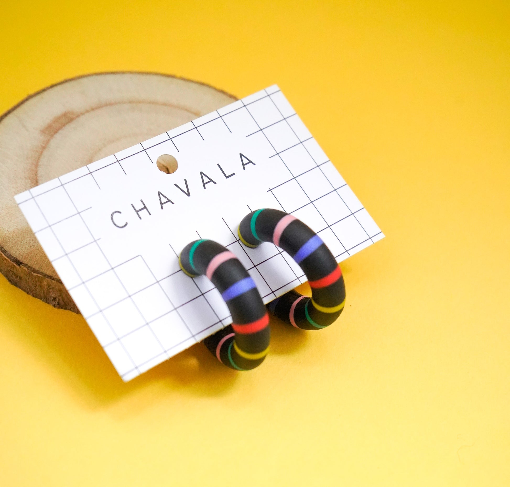 Pendientes #9 negro líneas de colores