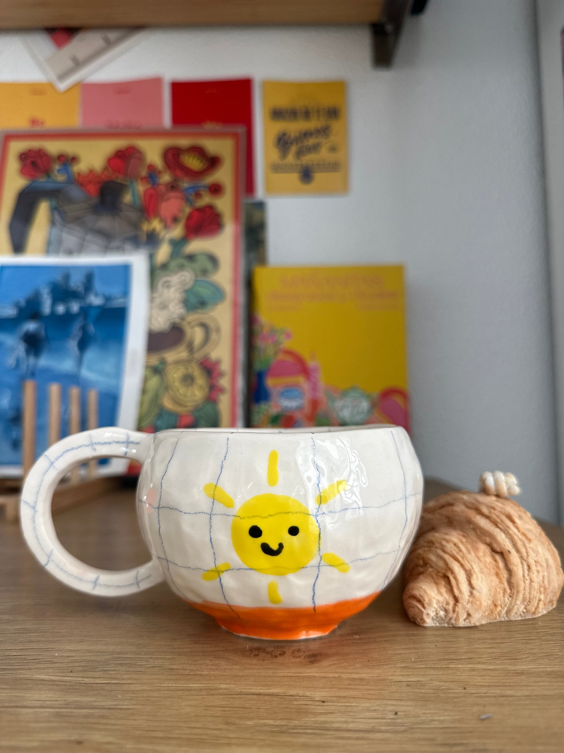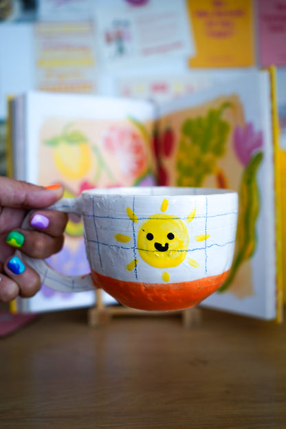 This cup has a good vibe and is really cool. Hand painted with a sun more beautiful than what.
