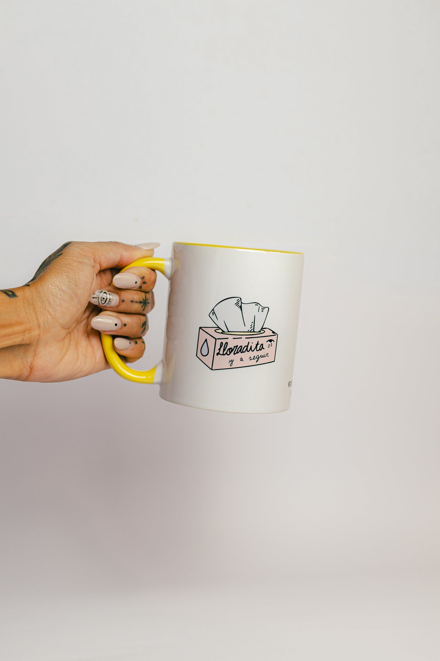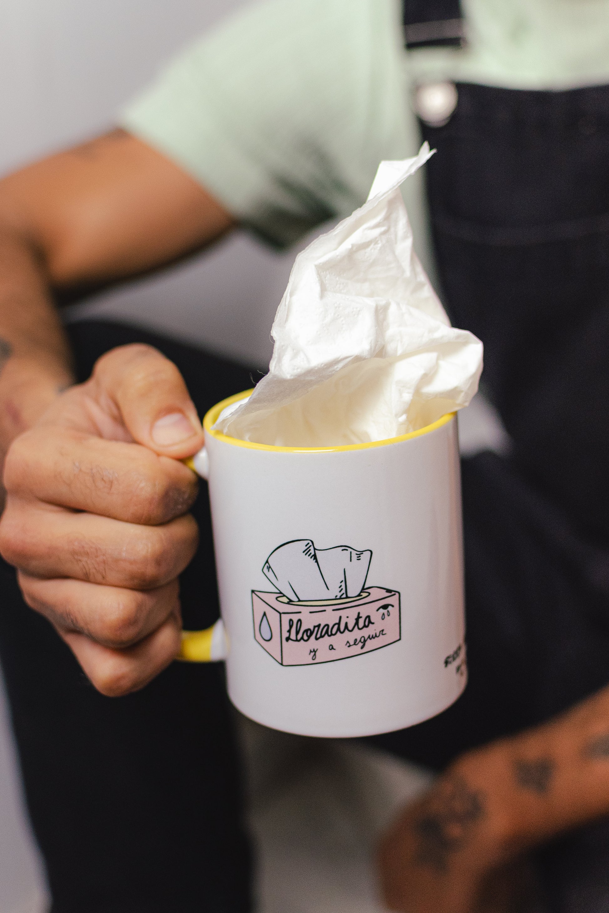 - Taza exclusiva de La Vecina en colaboración con Task con mensaje y colores por tos laos.