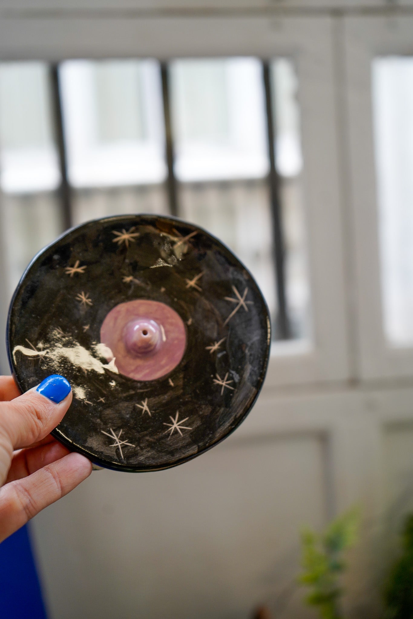 Tetas para incienso de cerámica (Negro y Rosa con estrellitas)