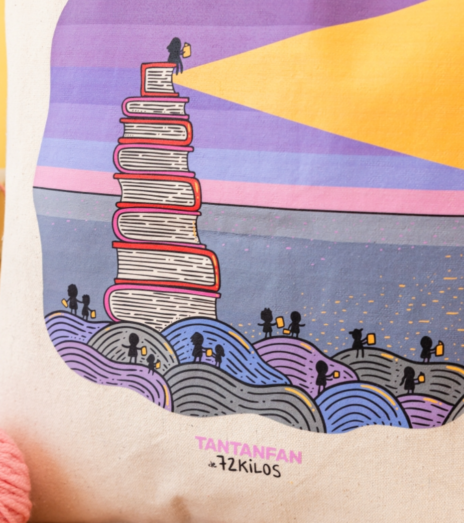 La bolsa de tela, ilustrada por 72kilos, perfecta para amantes de los libros.