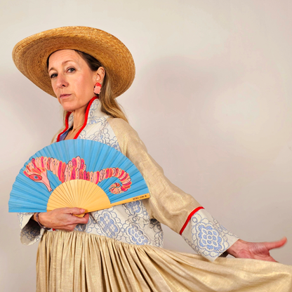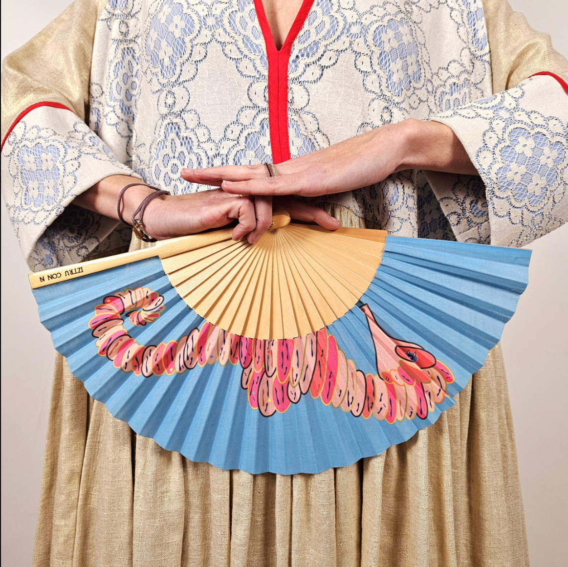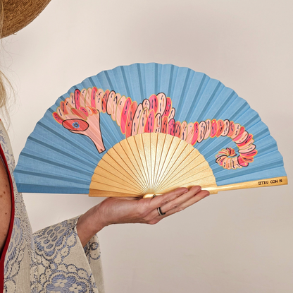 Este abanico está inspirado en los veranos de Urtzi en Cabo de Gata, cuando era peque que iba con la family a Almería.