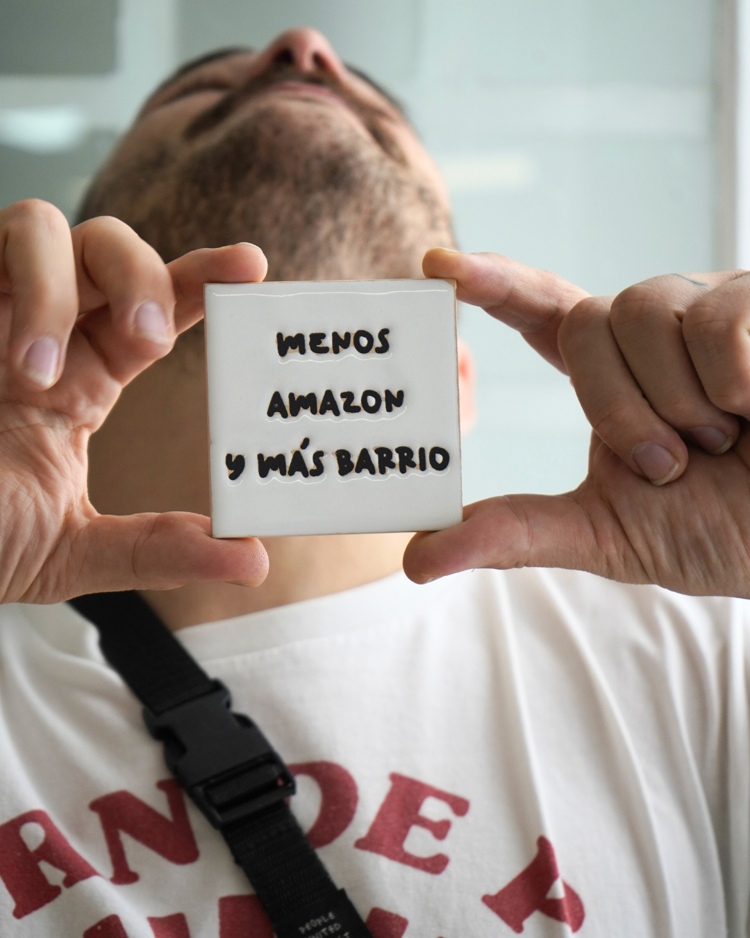 Azulejo imán de cerámica Menos Amazon y Más Barrio