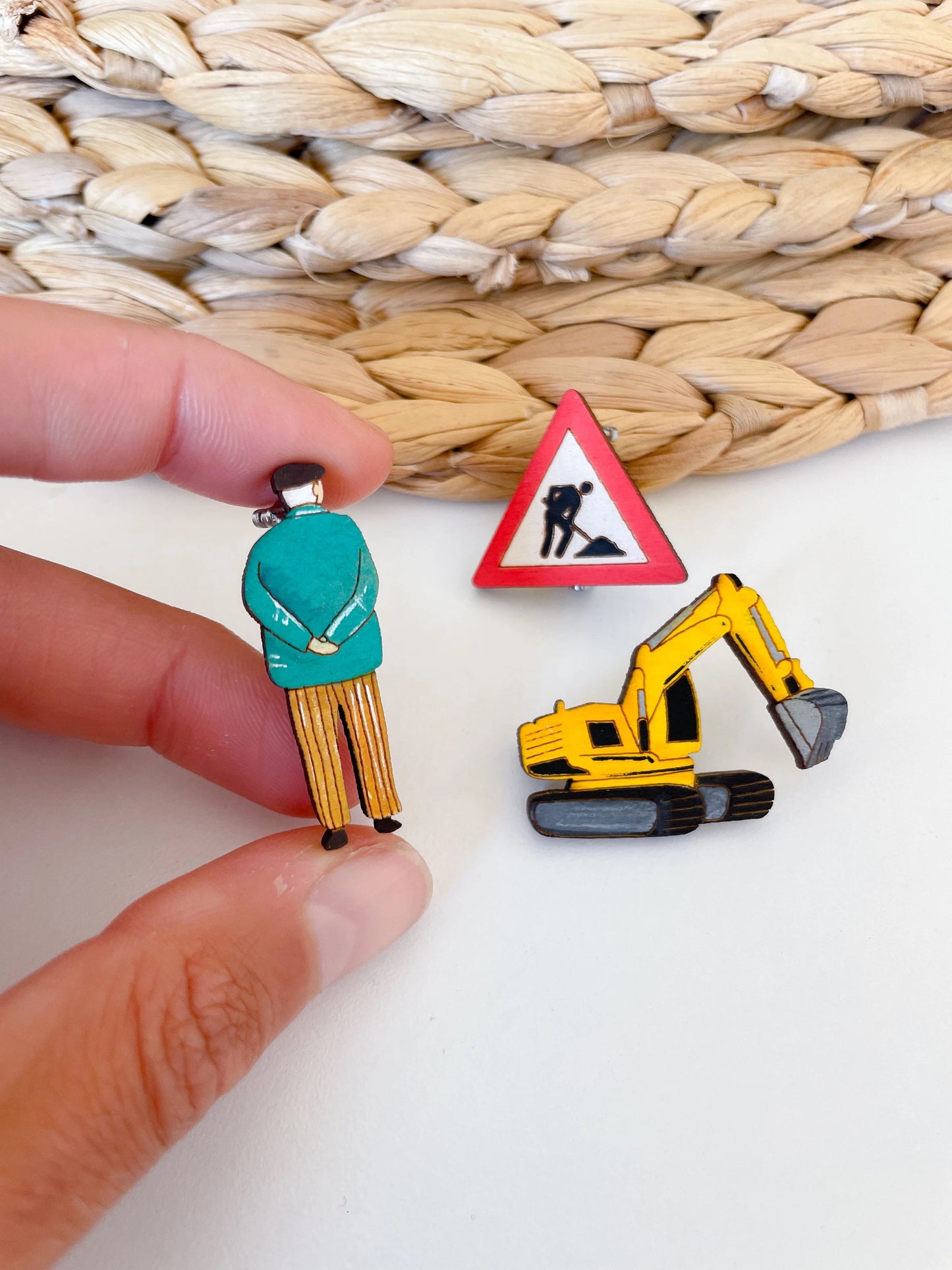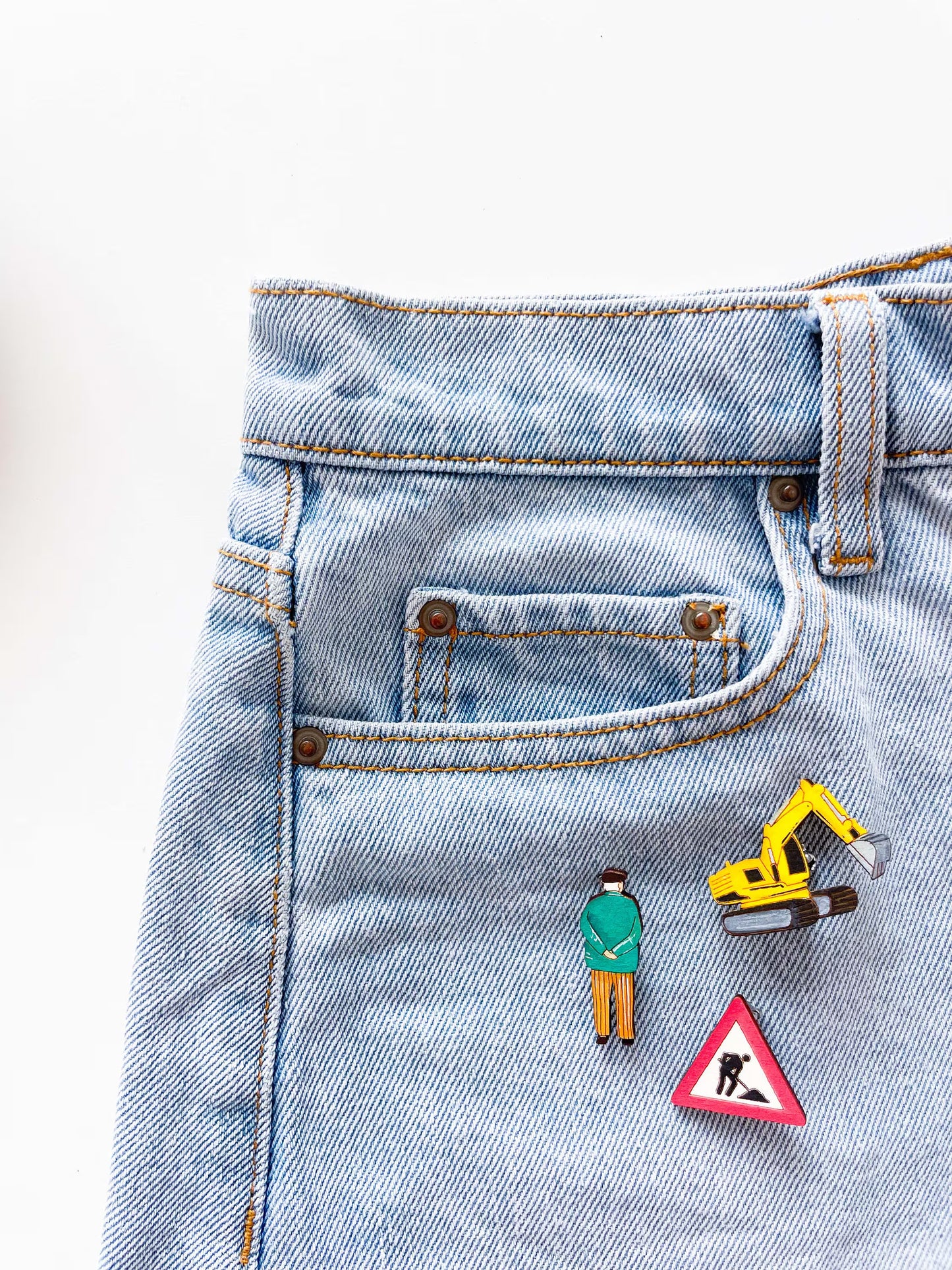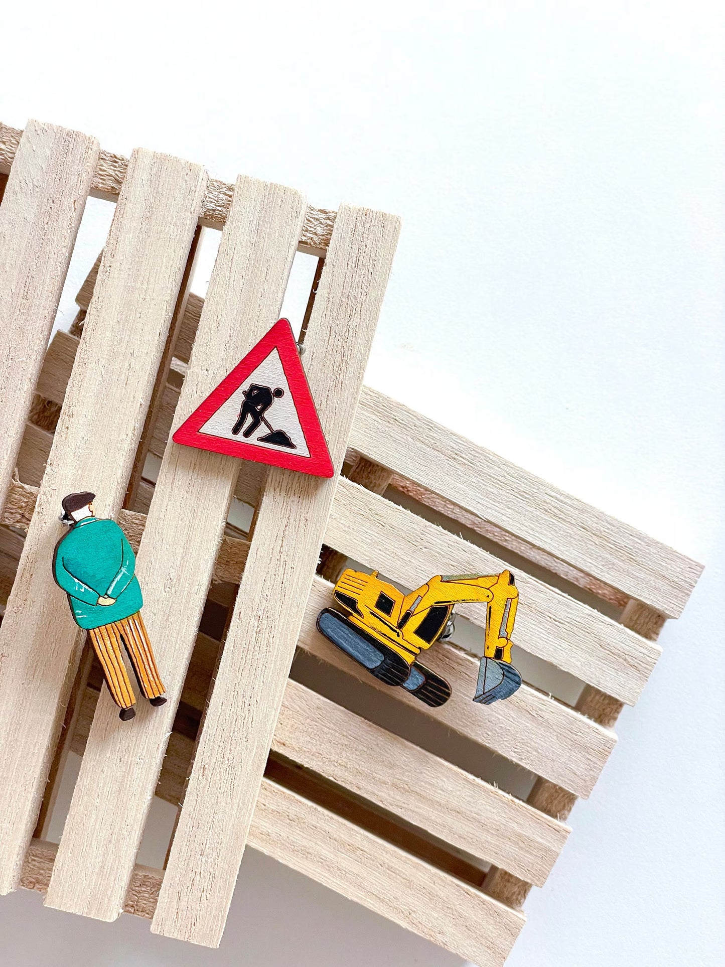 Y ponte estos tres broches de madera con cierre de alfiler… ¡diferentes pero combinados y pintados a mano!