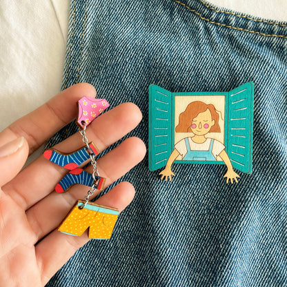 Y ponte estos dos broches de madera con cierre de alfiler… ¡diferentes pero combinados y pintados a mano!