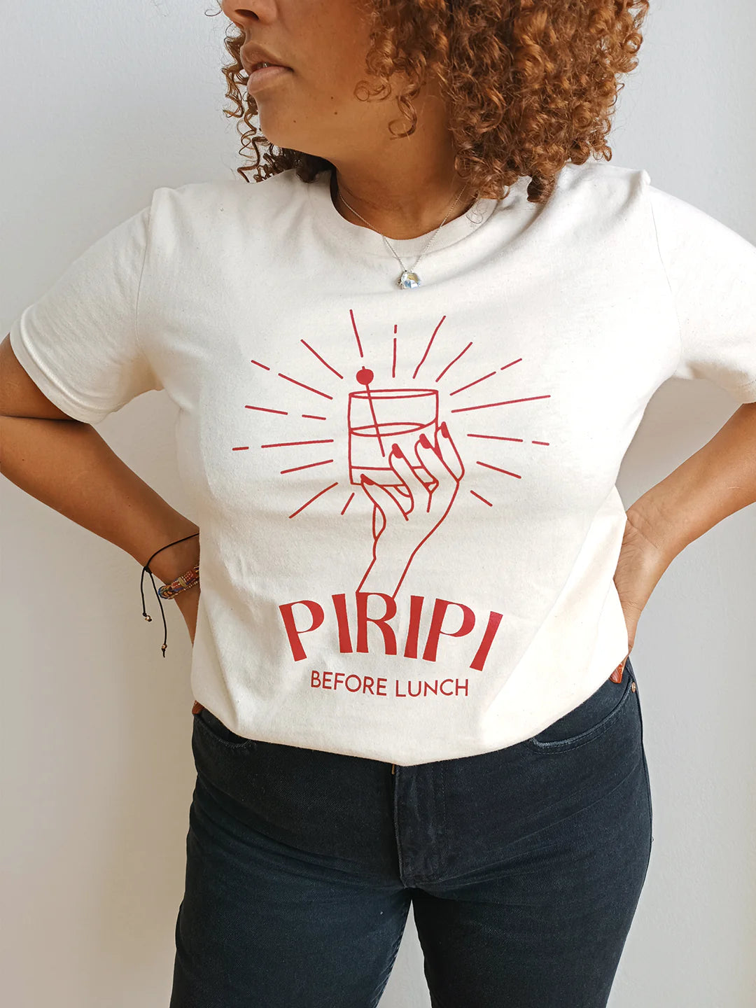 Una cami en tono natural que es un tributo a esas cañas antes de la comida que se alargan hasta el infinito y más allá. 🍷👕😎