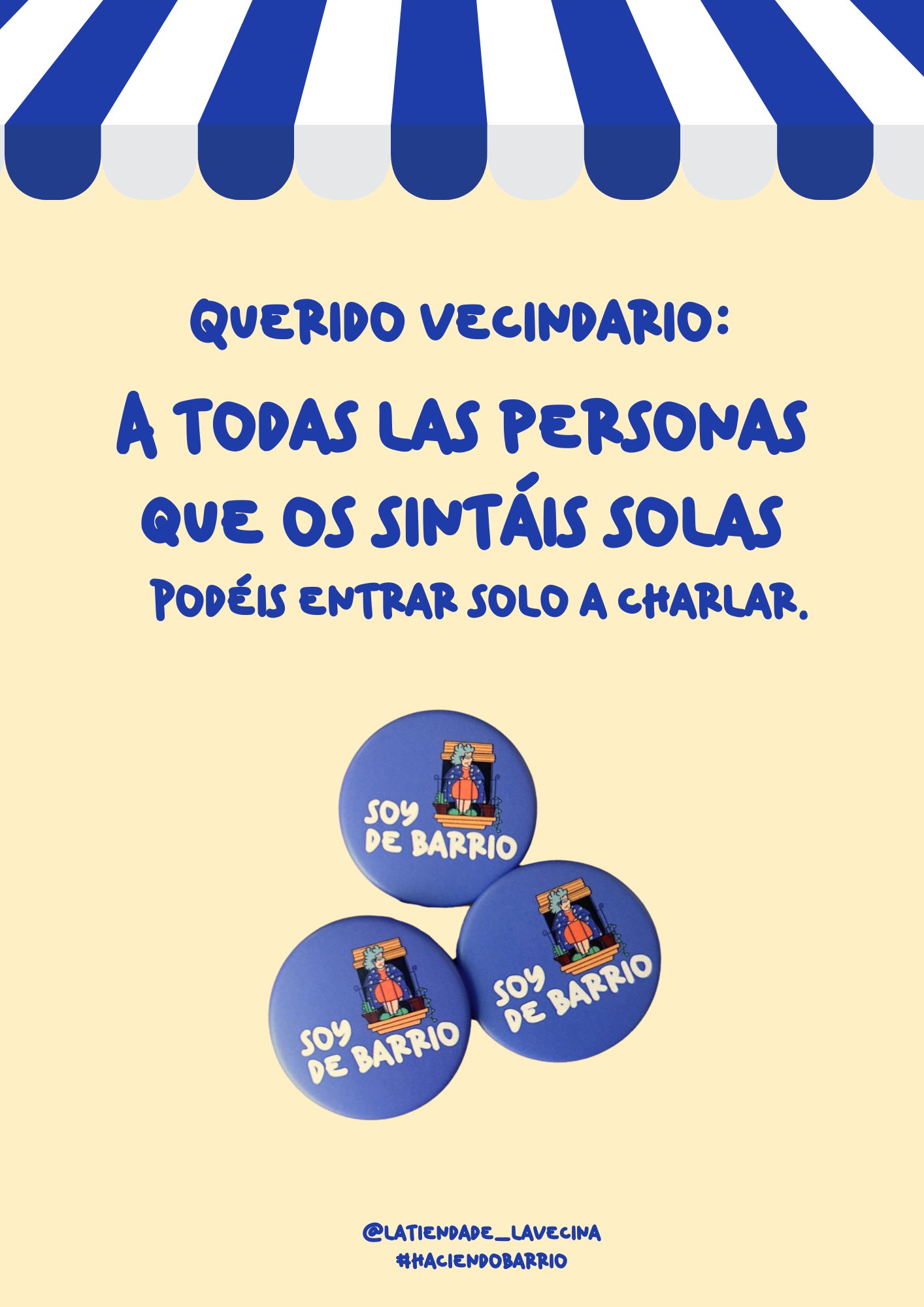 Chapa pa la gente de barrio, pa quien se asoma al balcón a cotillear... y a preocuparse por sus vecis, que entre nosotras nos cuidamos mejor que el estado.