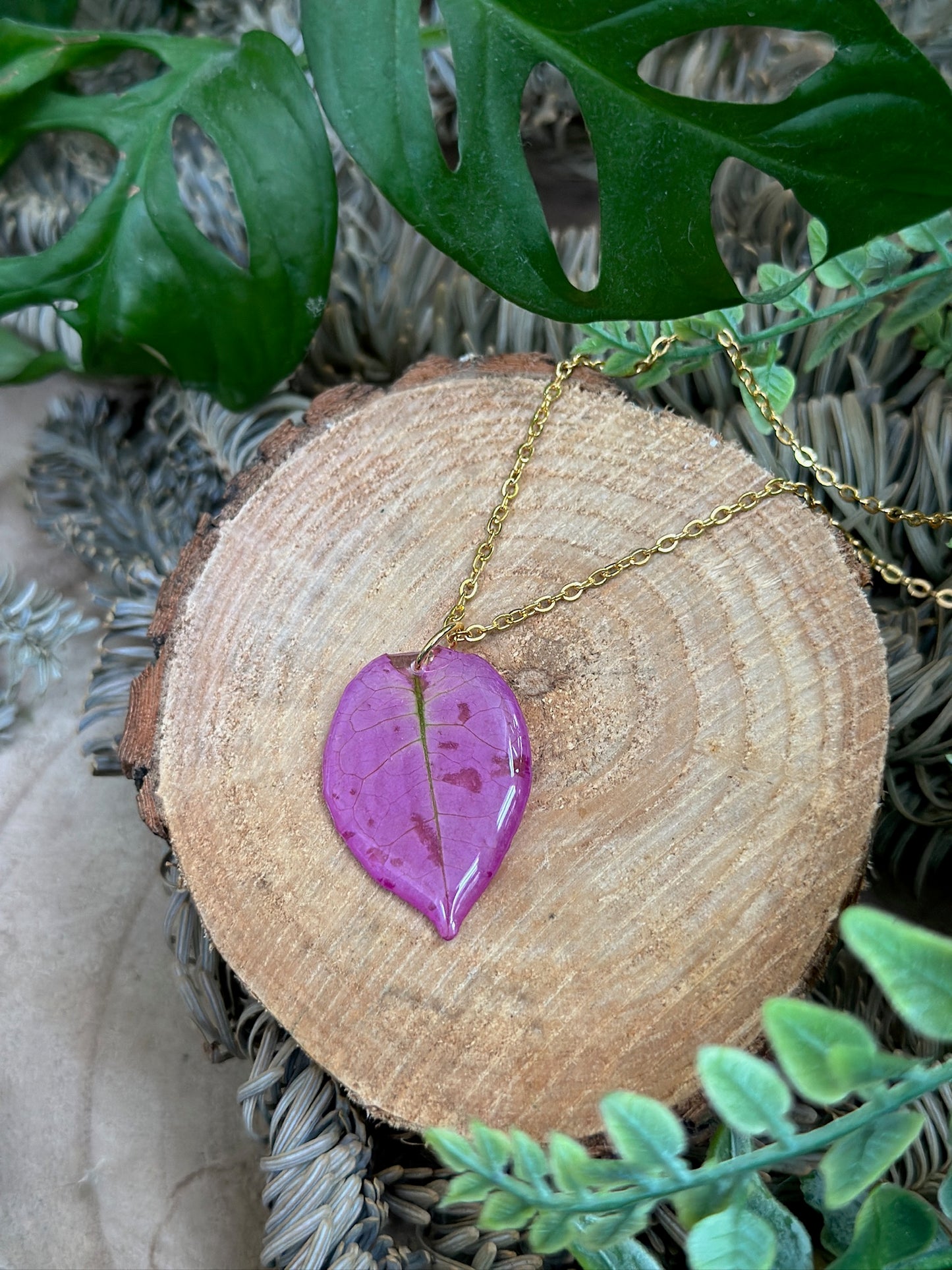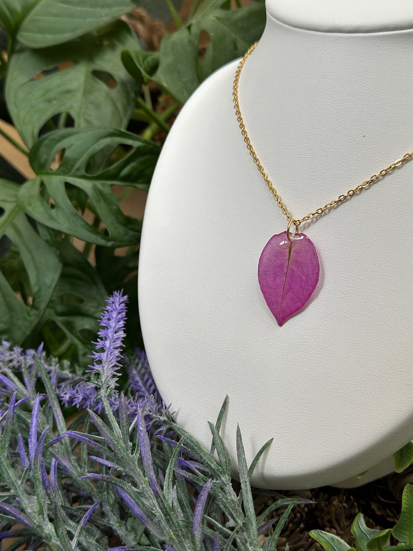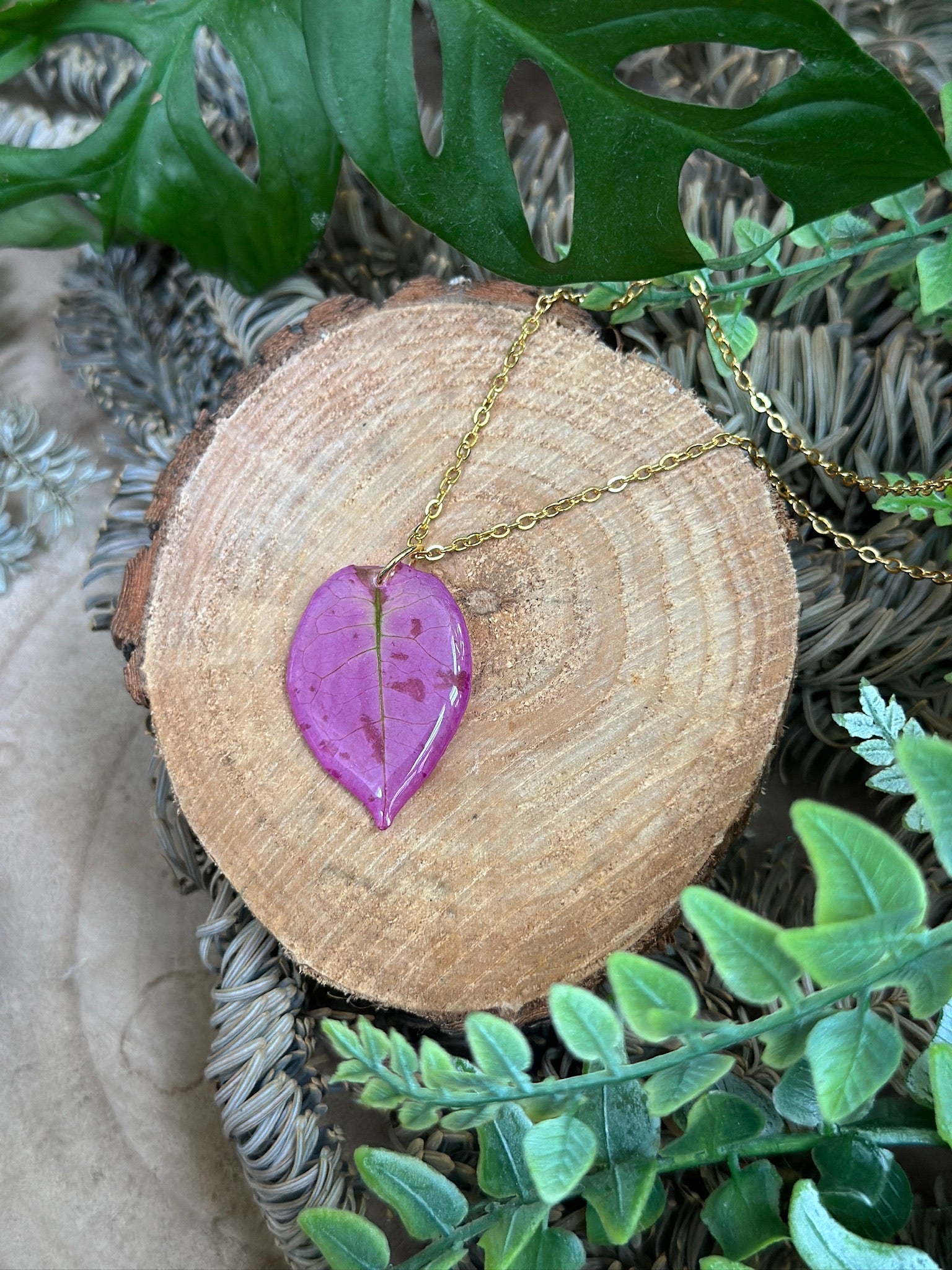 - 👉 Collar con buganvilla encapsulada. Cadenita de acero inoxidable con altura ajustable.