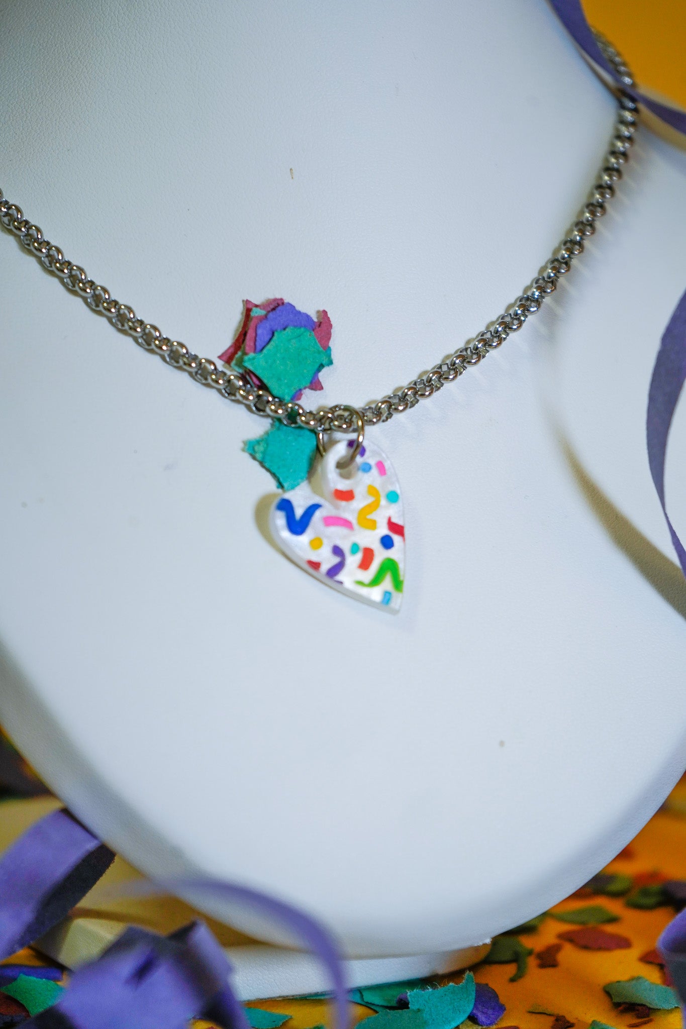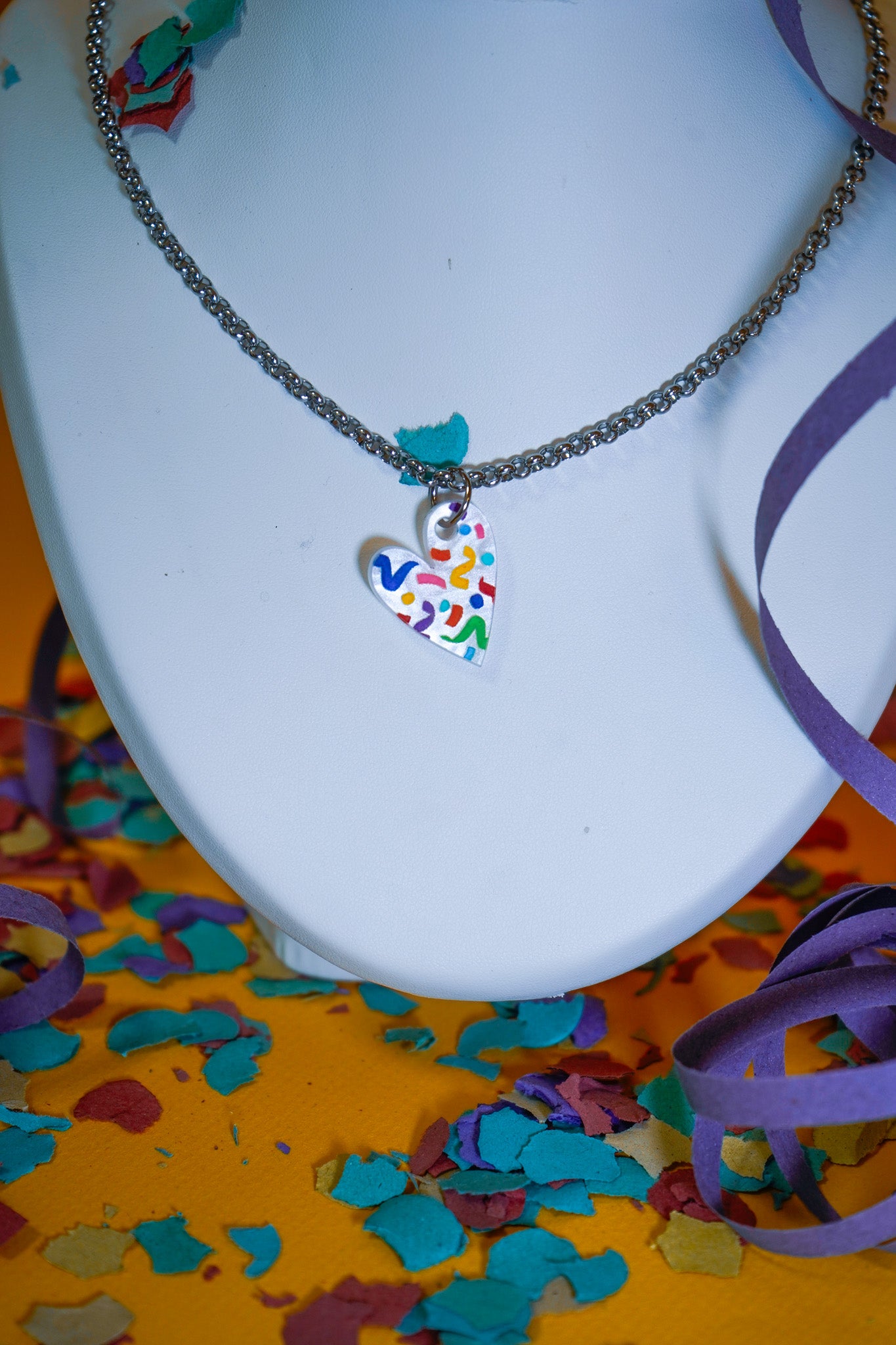- 👉 Collar con corazón de metacrilato, con cierre de tornillo de acero.