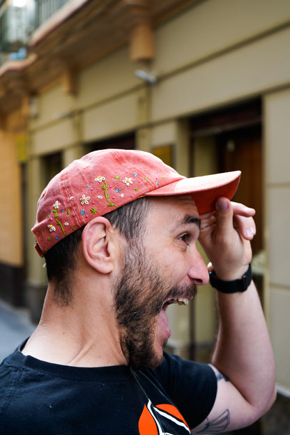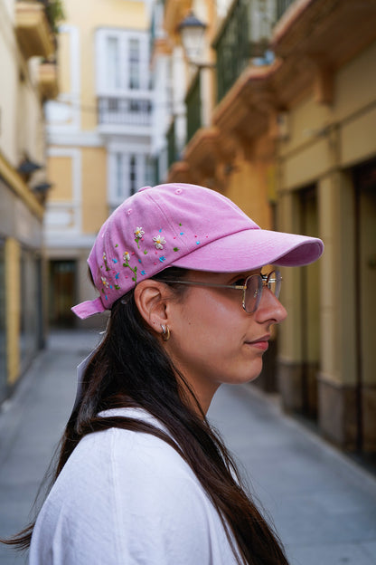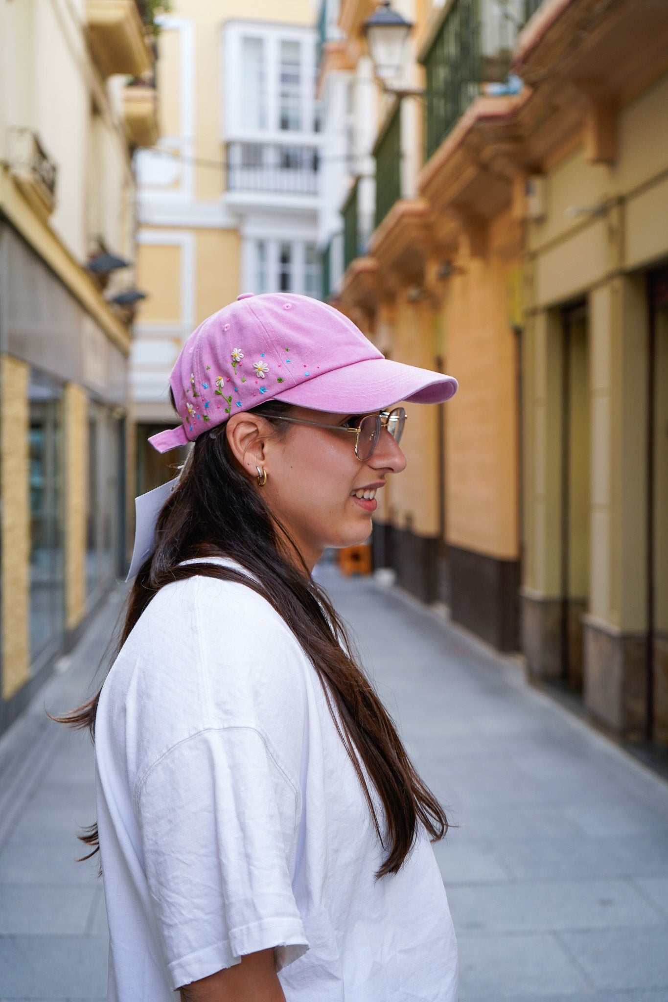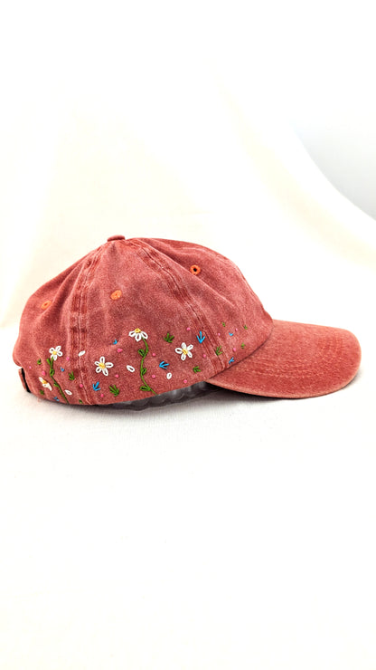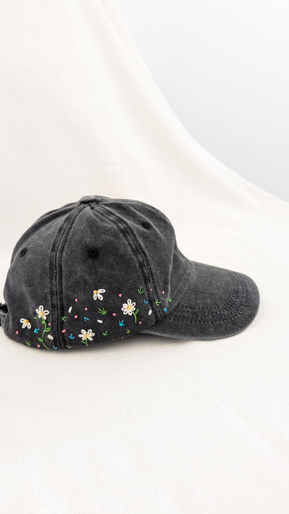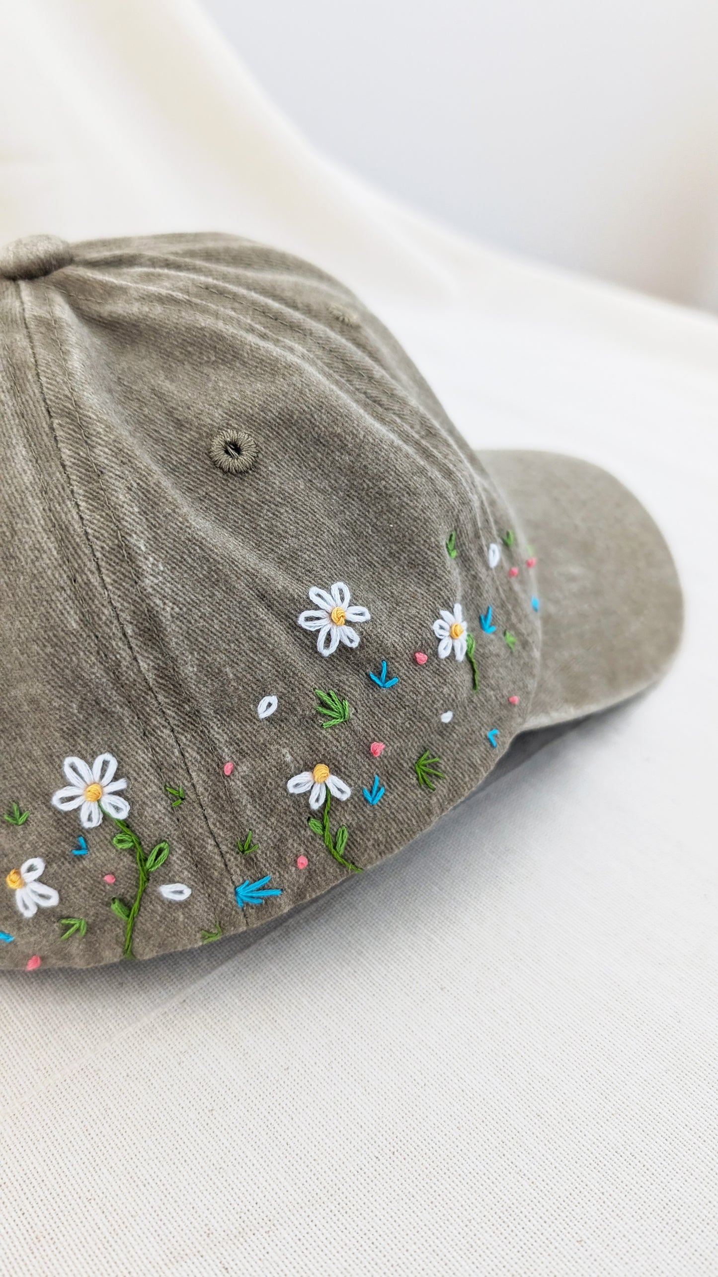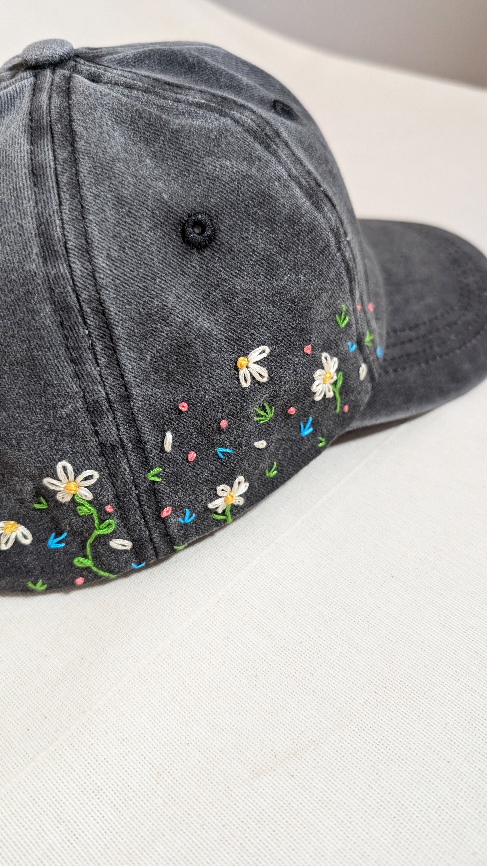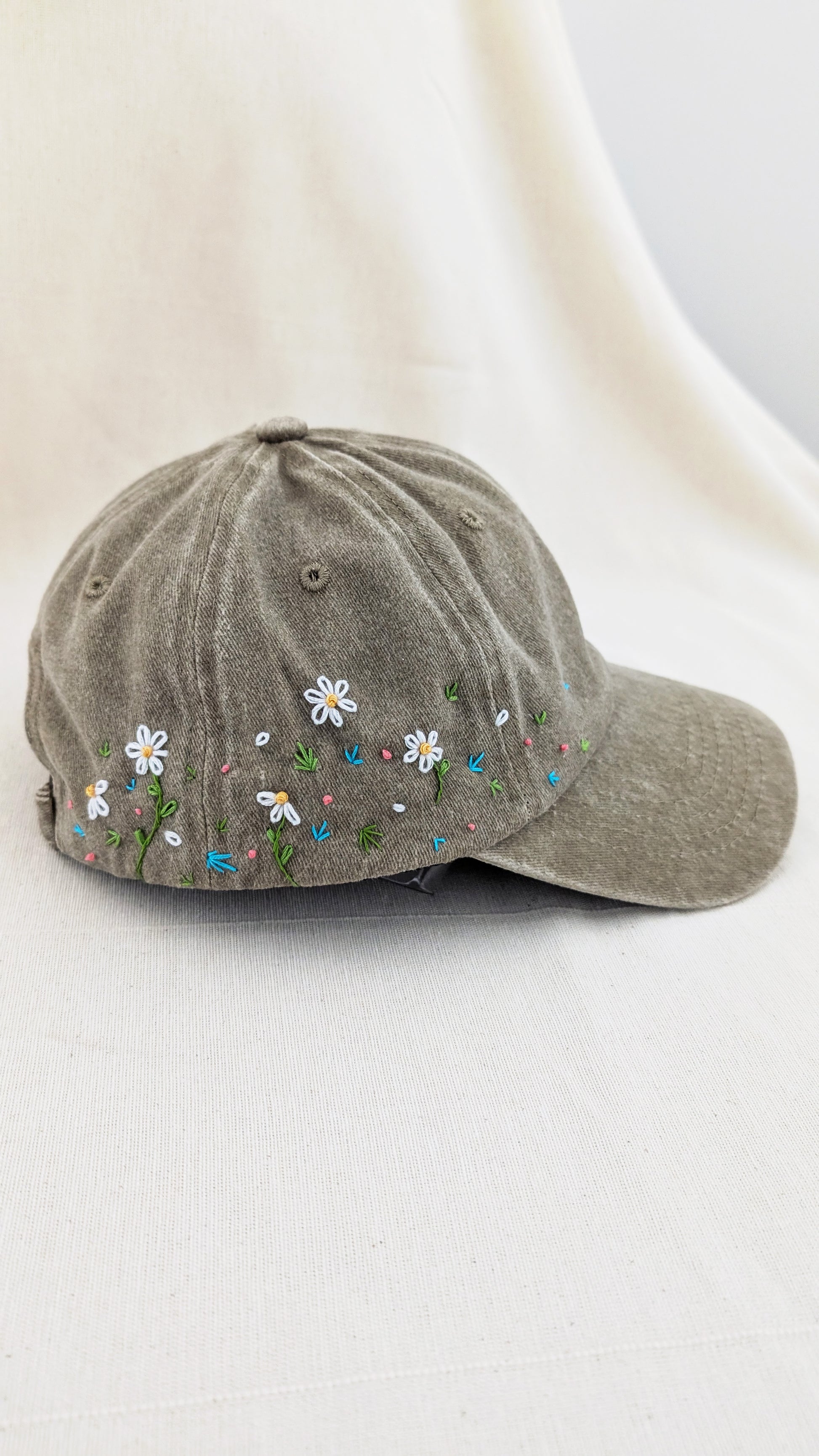 Estas gorras están bordadas a mano alrededor de margaritas y sol.