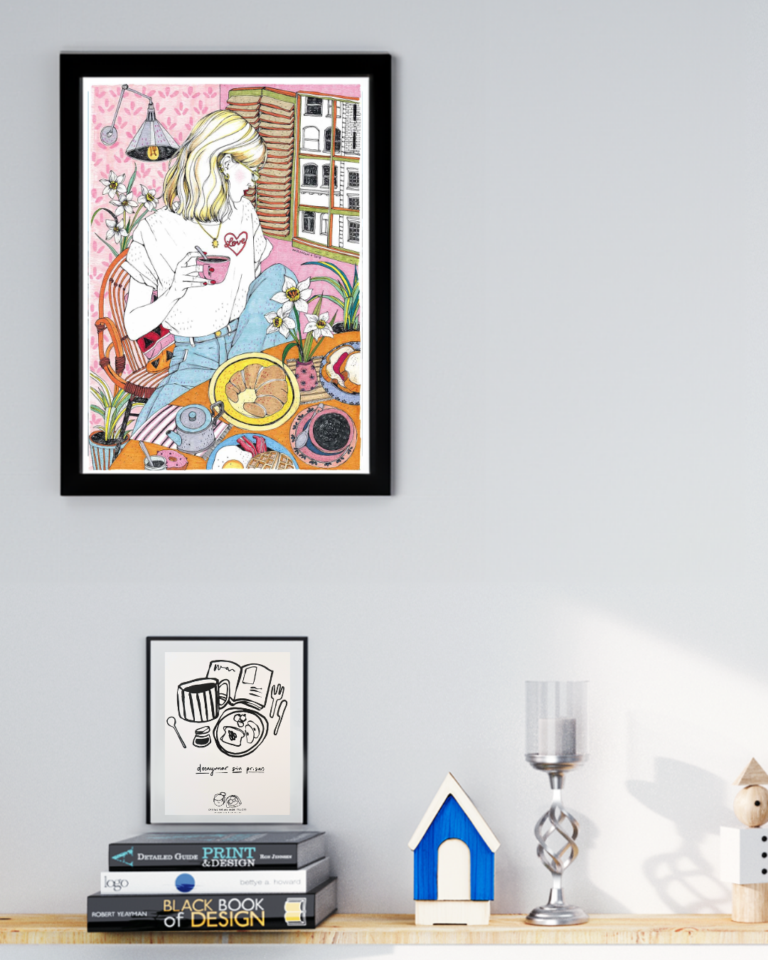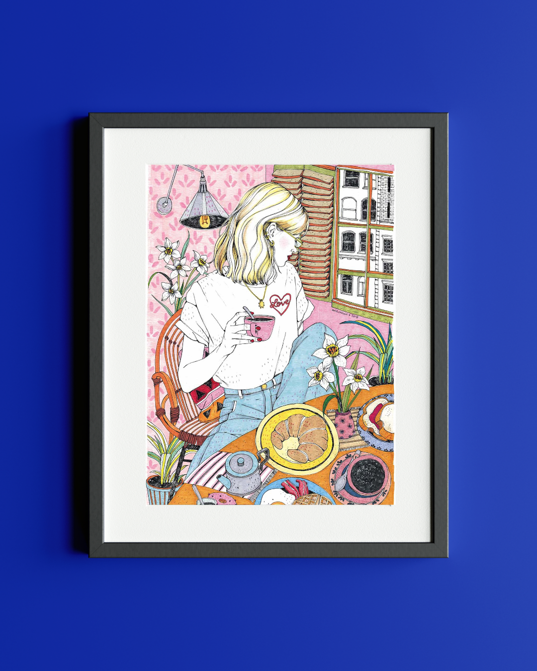 Lámina A4 Chica desayuno croissant
