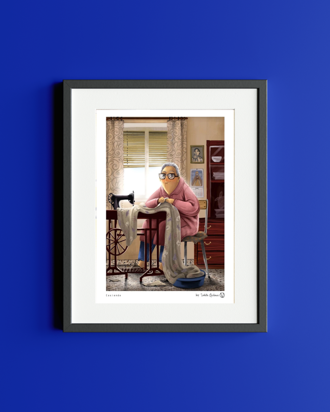 Lámina Abuela cosiendo