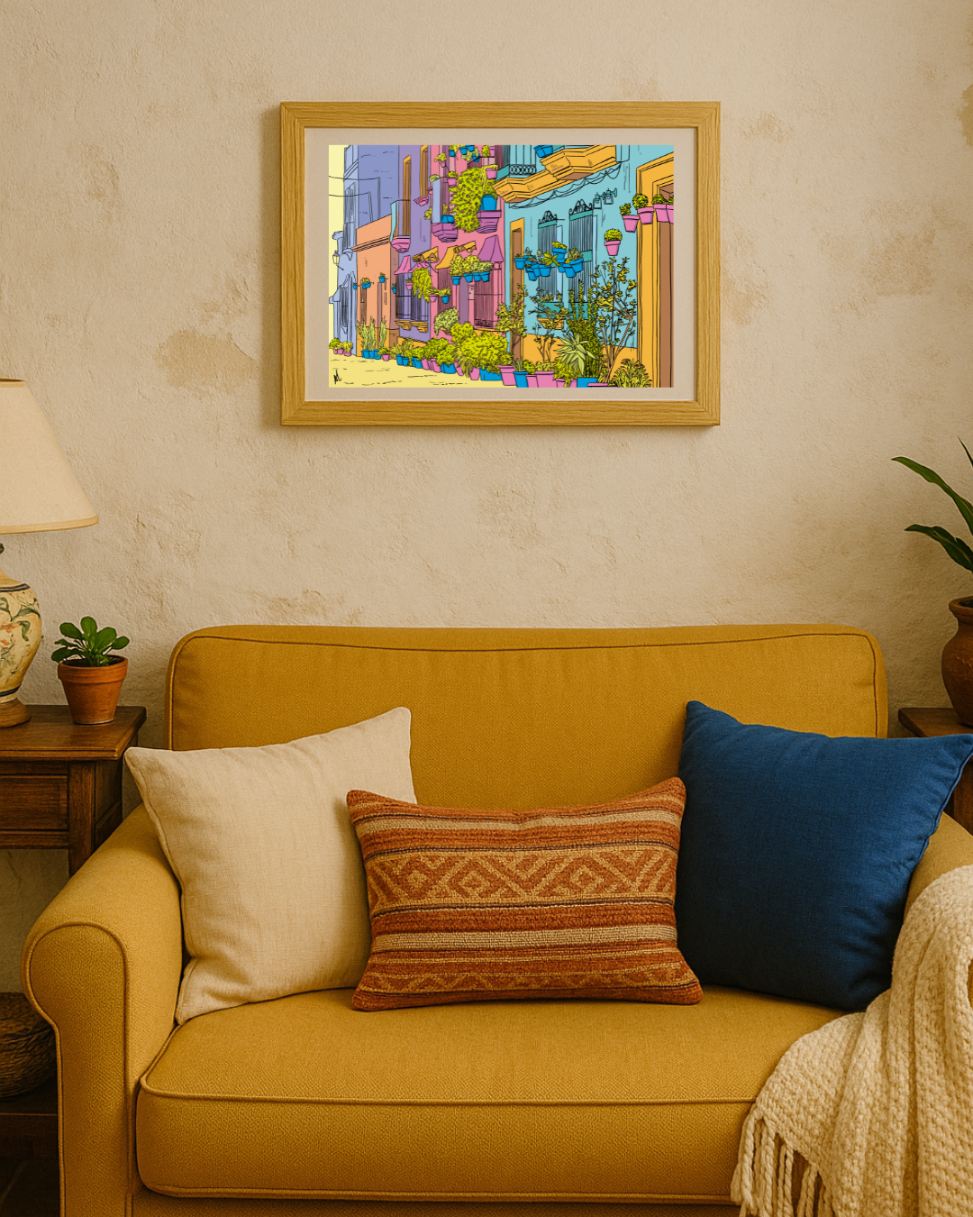 Lámina Barbate y su calle con plantas
