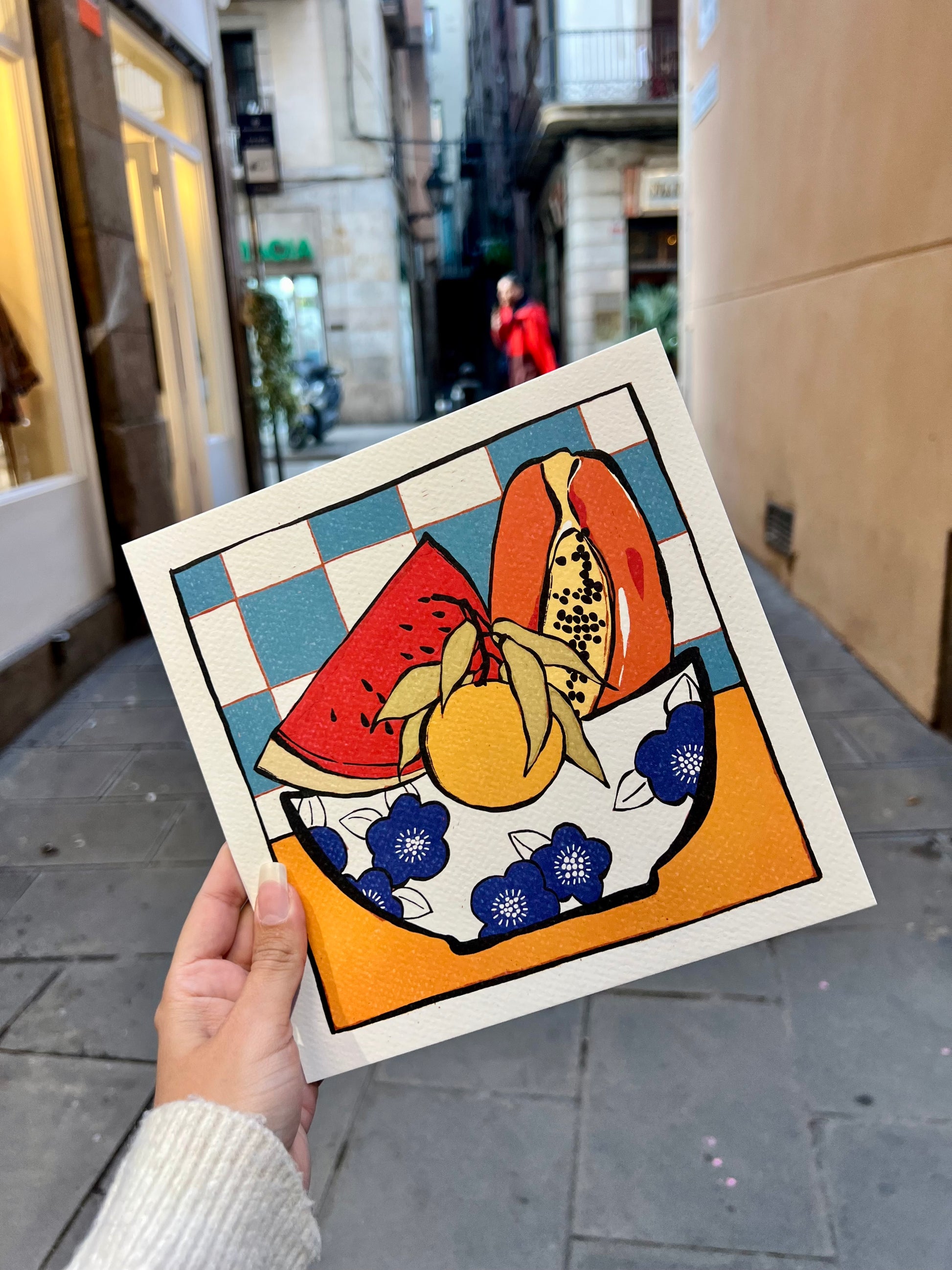 Laminita de una cestita de fruta, pa recordarte que tienes que comer fruta amigui.