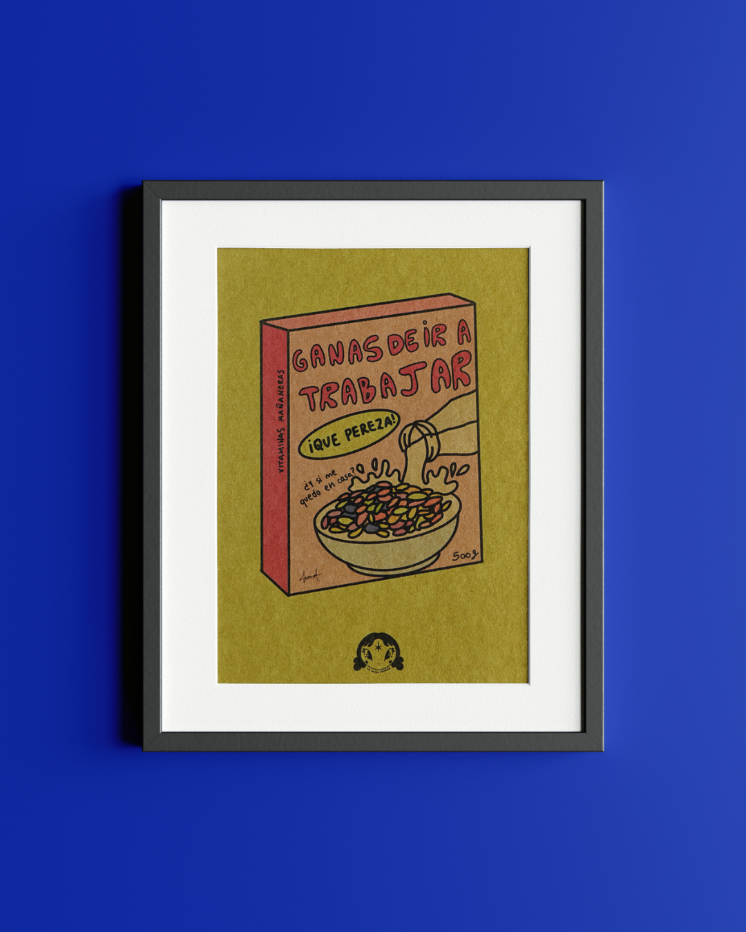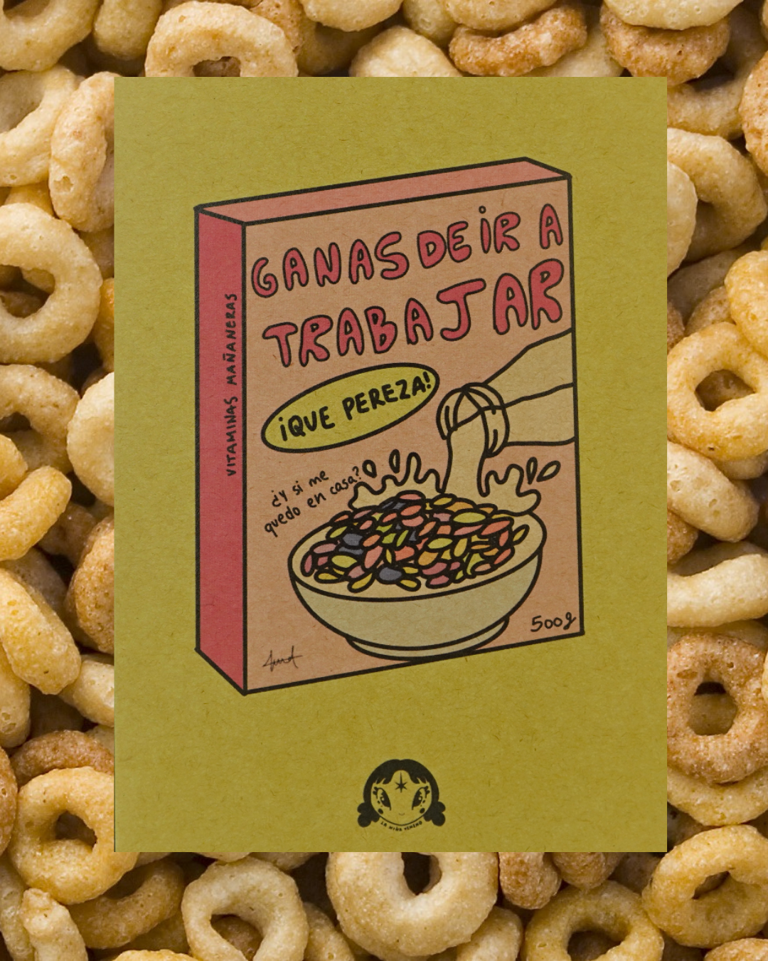 Esta lámina es como esa amiga que entiende tus luchas matutinas. ¿La caja de cereales te desafía con un "¿Ganas de ir a trabajar?" Pues ¡Qué pereza!