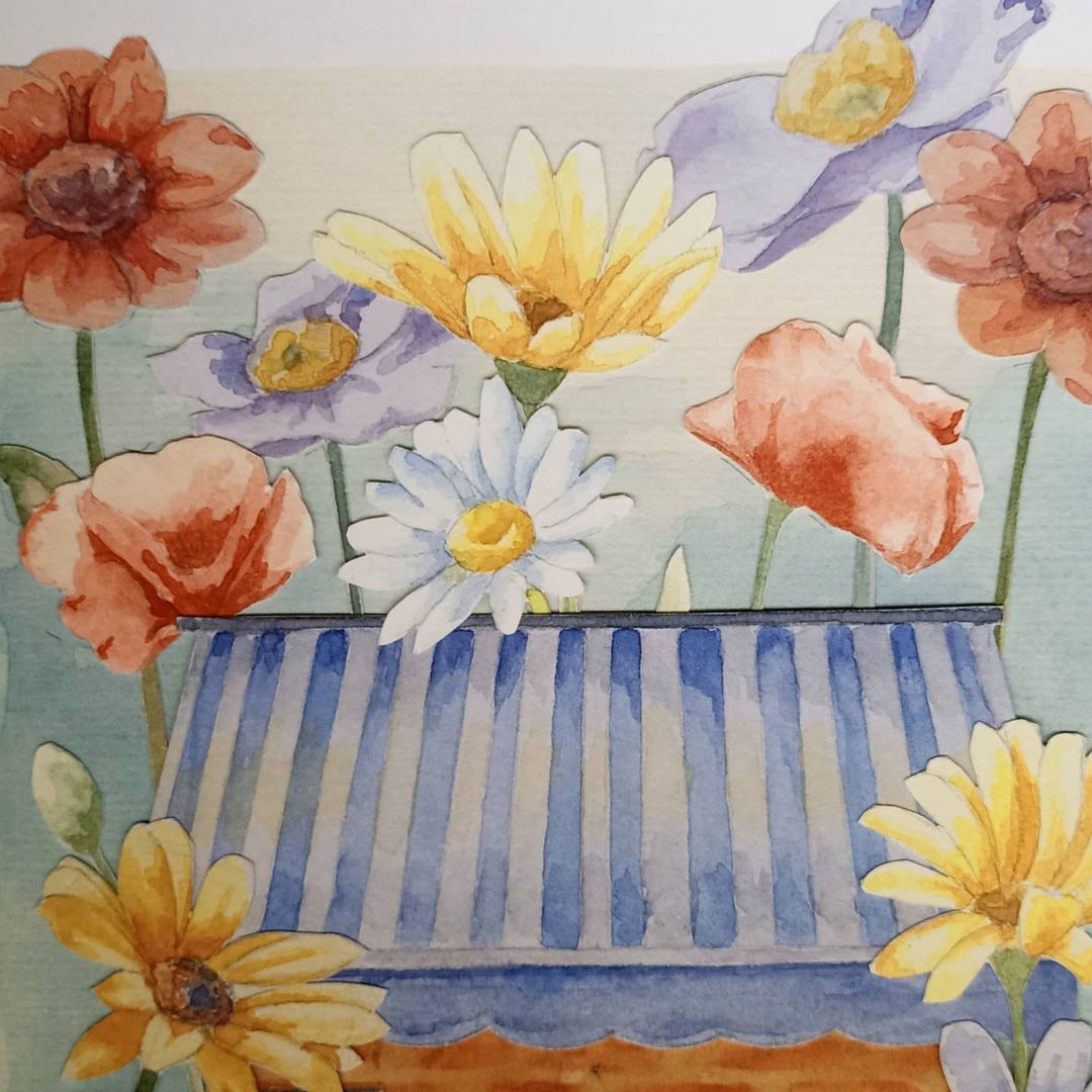 Ana mezcla dibujo con técnica de collage con las flores encima y sale esta fantasía de lámina.