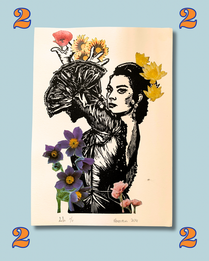 Lámina Lola con Flores - Collage Linóleo