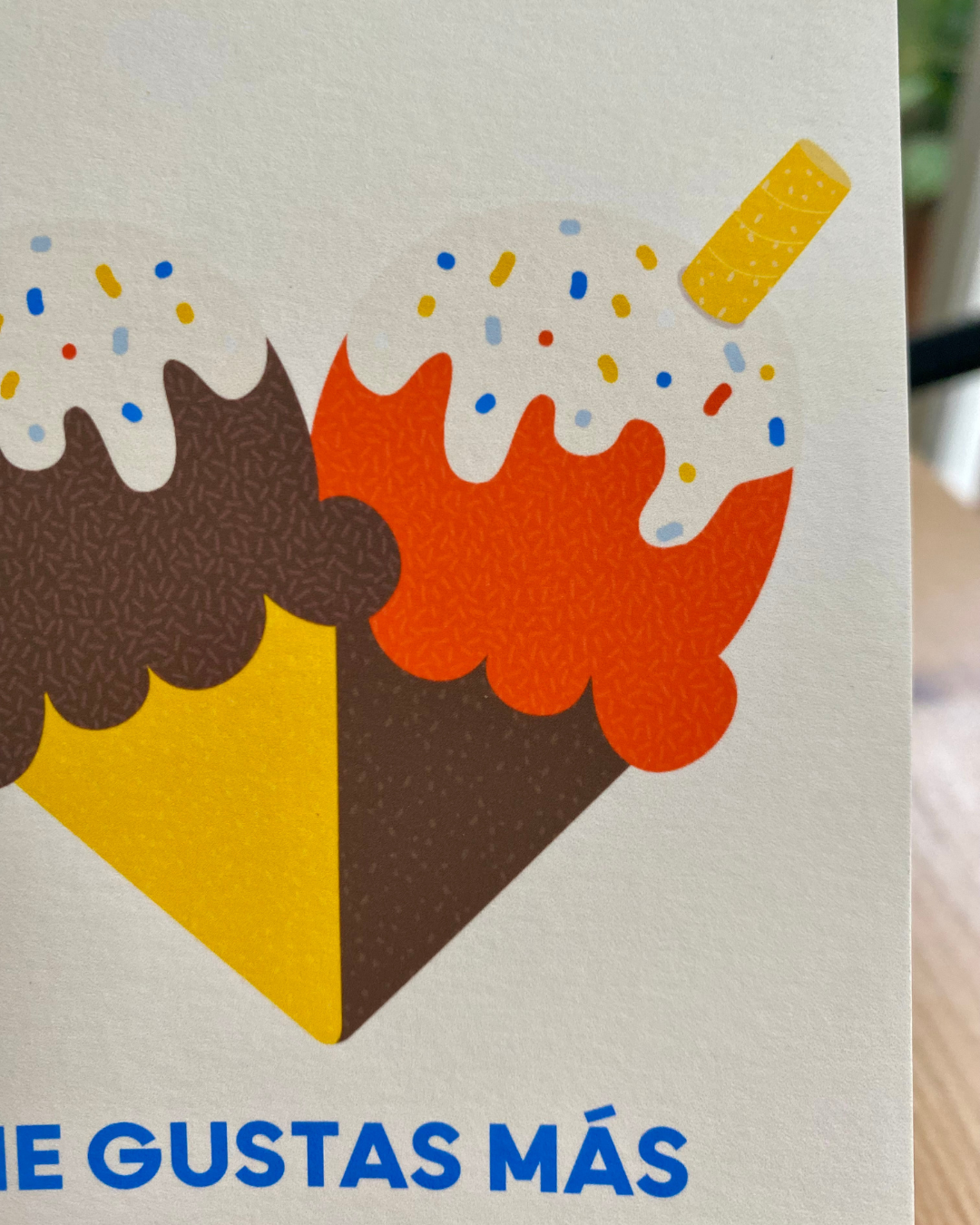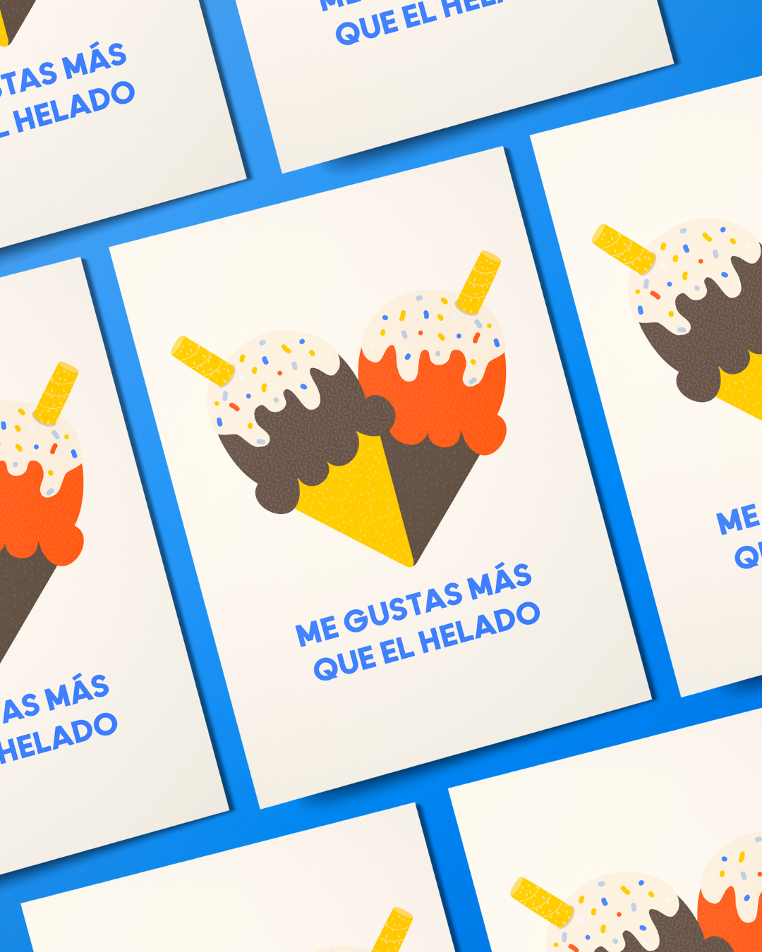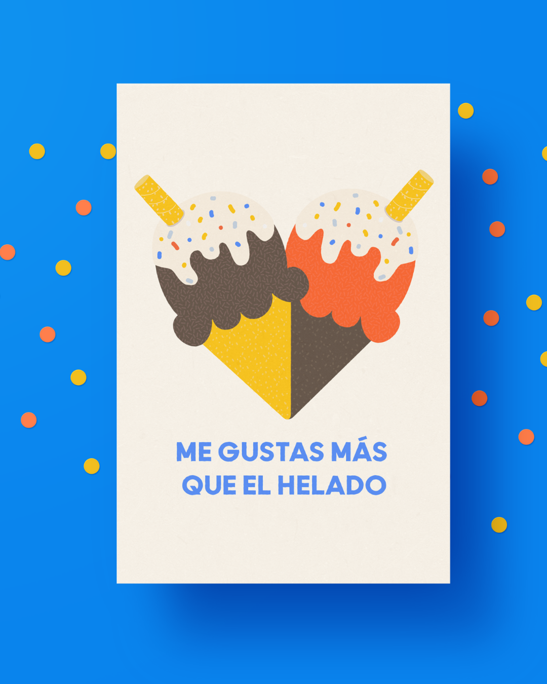 Palabras mayores. Porque el helado nos gusta bastante. Así que si regalas o recibes esta postal tienes mucho que celebrar. Ahora puedes tener un helado para siempre, un helado que no se derrite.