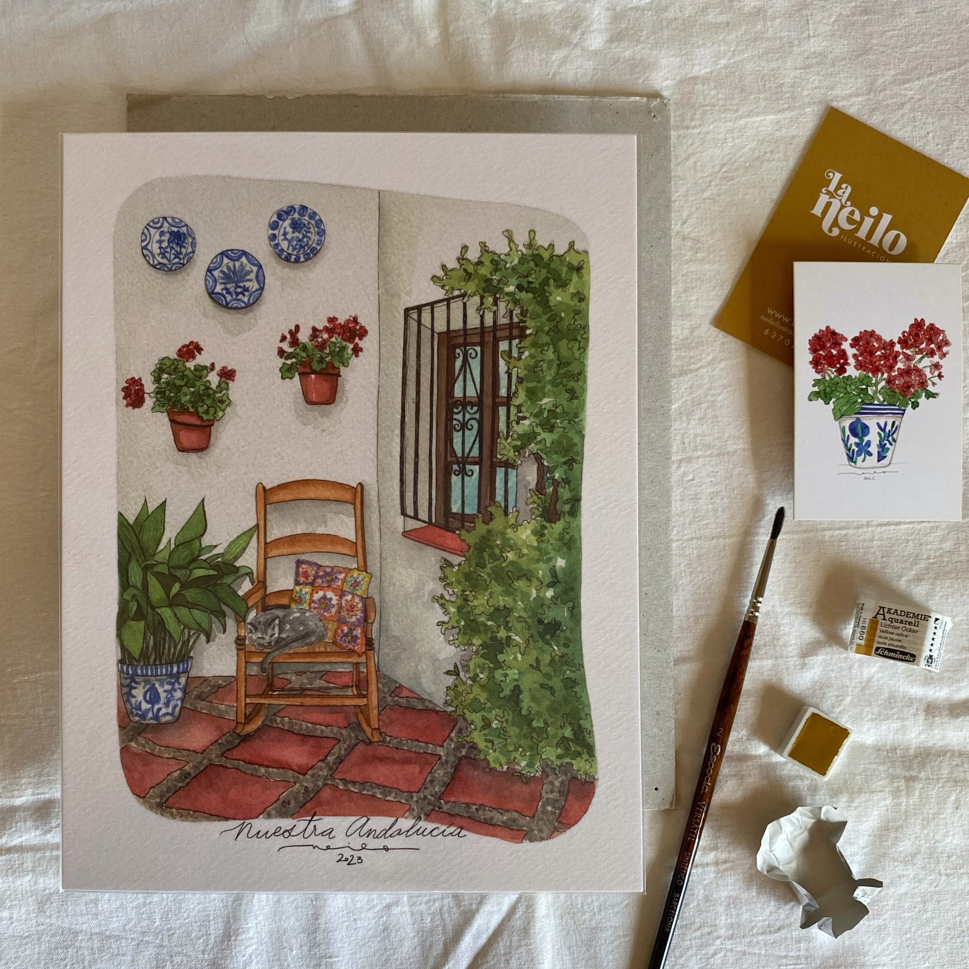 - Técnica de papel con acuarela con mucho de Andalucía.