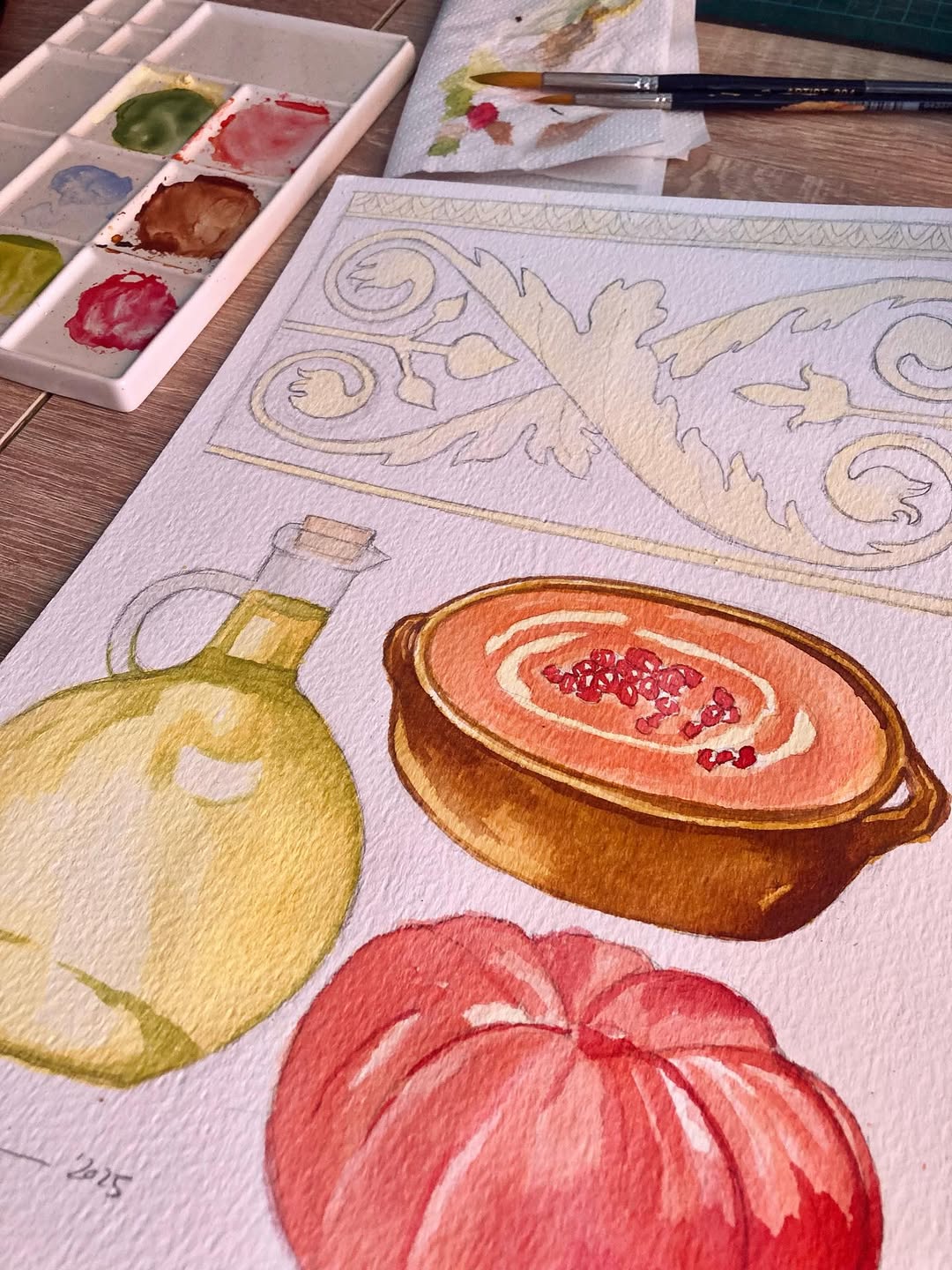 - Raquel Sarabia ilustra una jartá de bonito, lo hace toito a mano y con acuarelas.