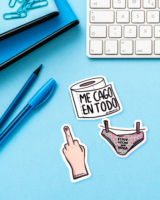 Pegatinas Estoy hecha una braga, me cago en to y 🖕