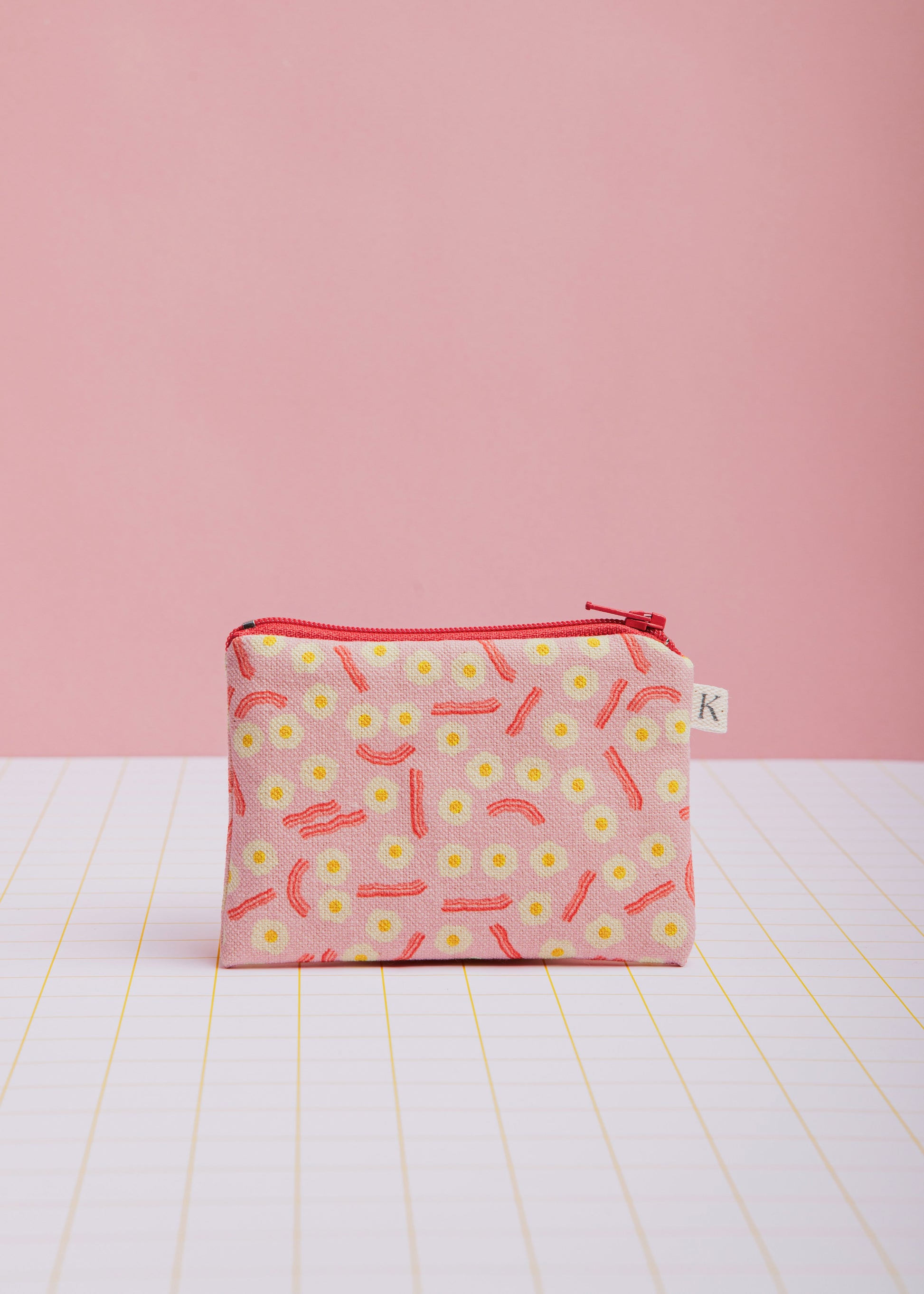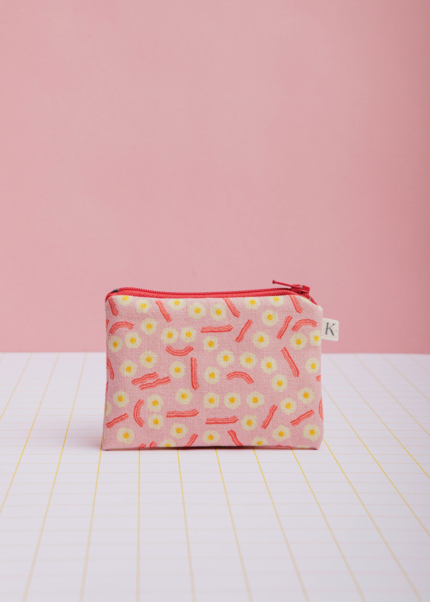 Este monedero es un desayuno inglés o de resaca de huevos con bacon... y es perfecto pa llevar tus moneditas y las tarjetitas.