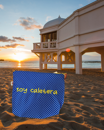 Azul vecina lunares letra amarilla - Soy Caletera - Neceser