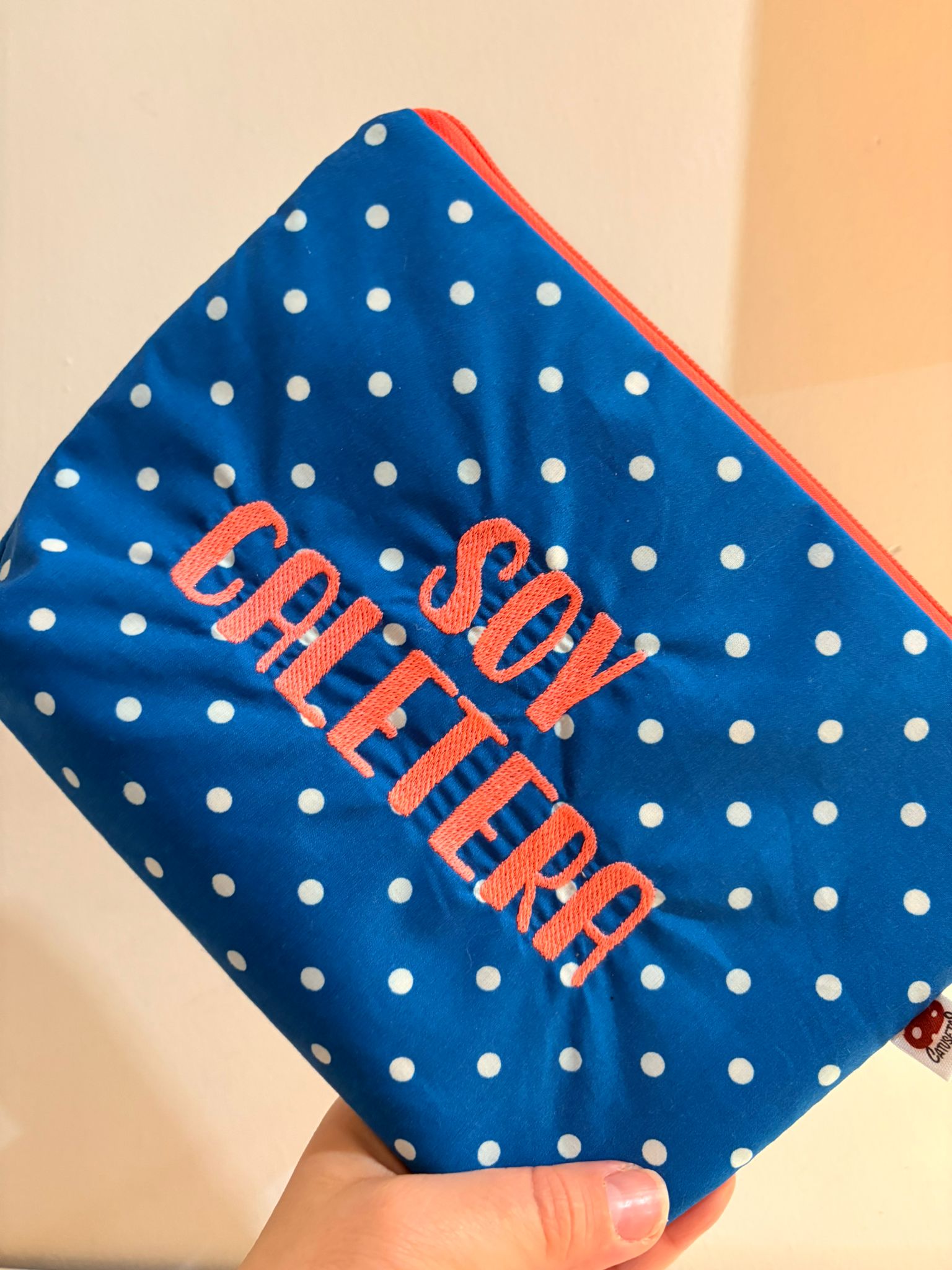 Azul lunares turquesa letra rosa - Soy Caletera - Neceser