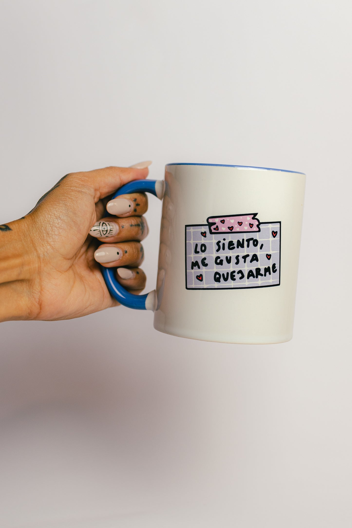 Taza cerámica artesana azul y rosa