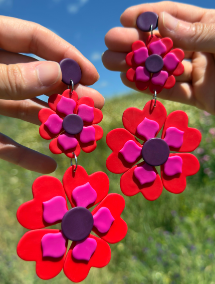 Pendiente Grovy (color rojo y fucsia)