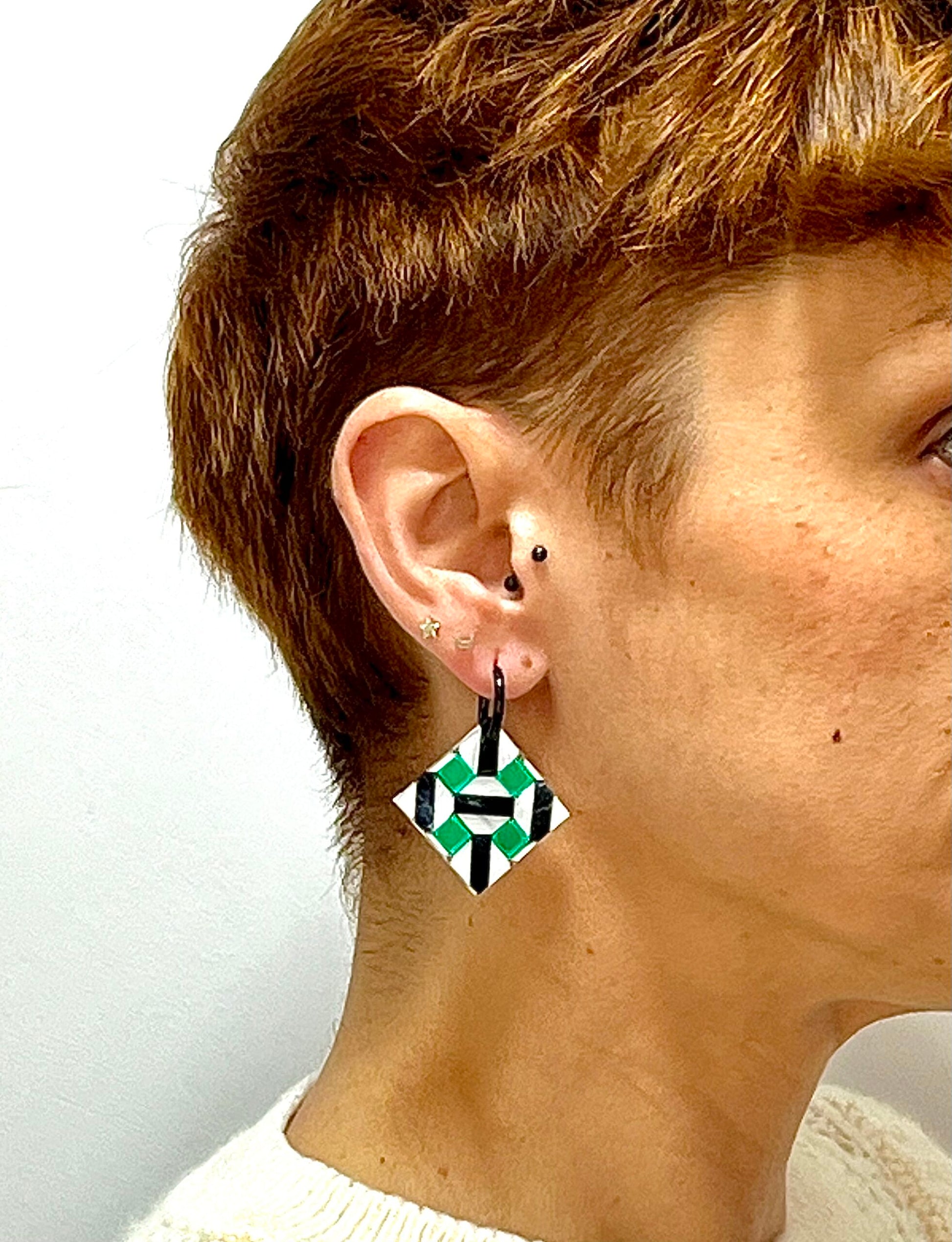 Pendientes inspirados en los azulejos de Reales Alcázares de Sevilla, en sus formas geométricas y sus colores.