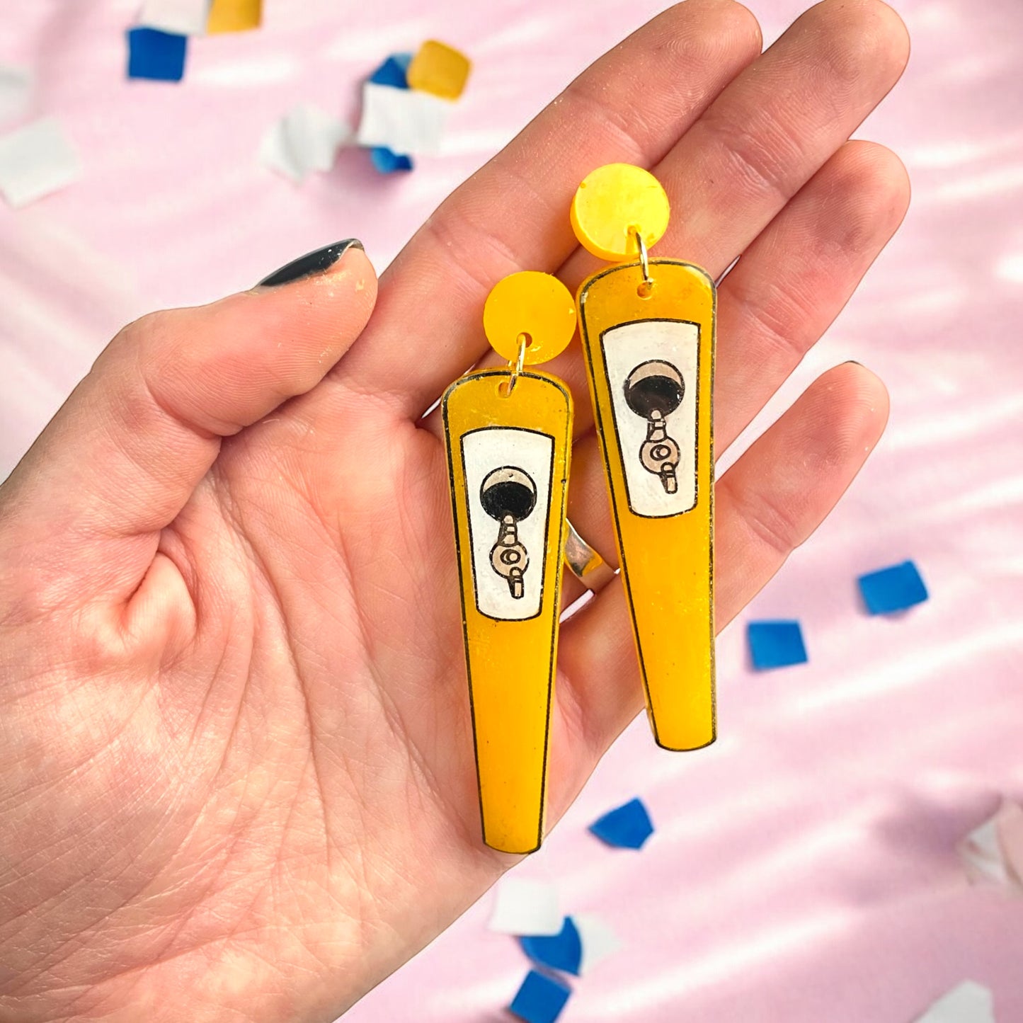 Estos pendientes de pito de carnaval vienen llenos de alegría, color y pintaito a mano!