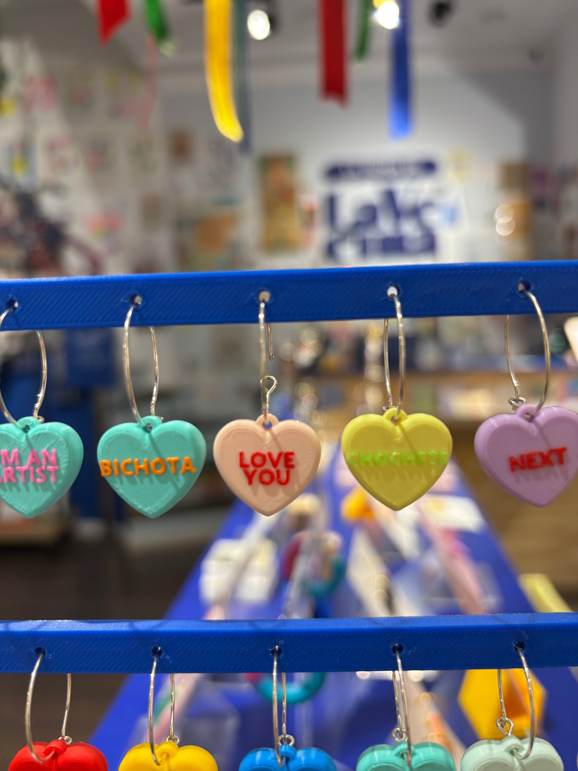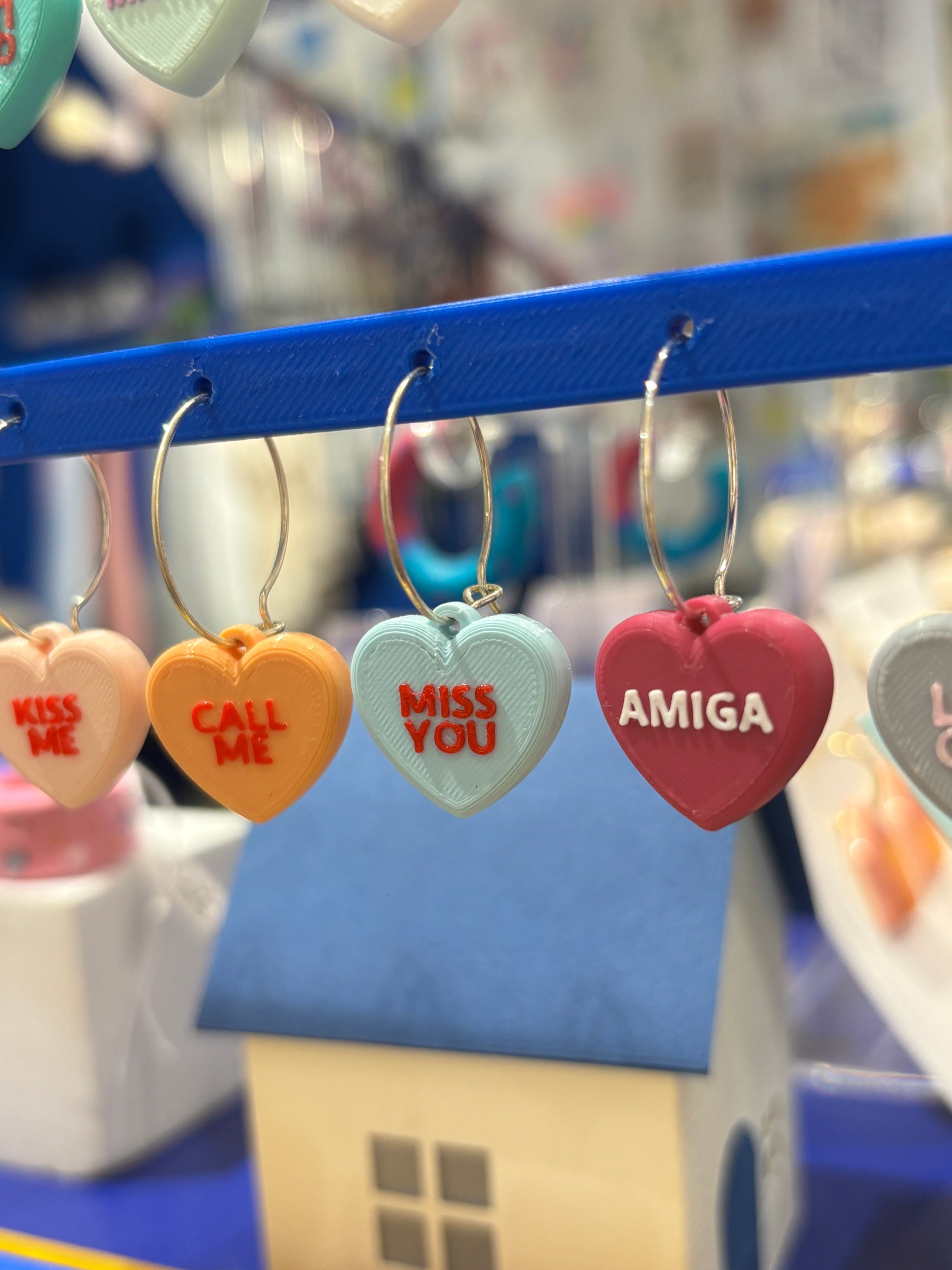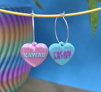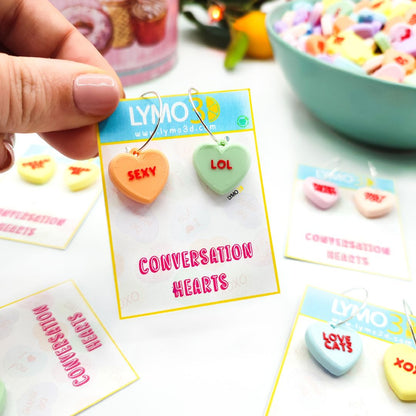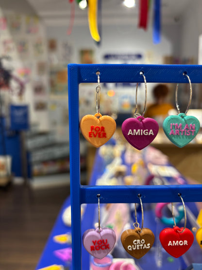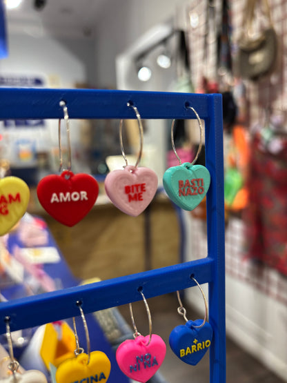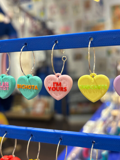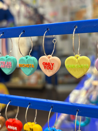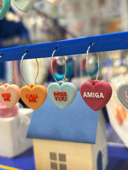 Pendientes rollo los Candy Hearts de cereales que son corazones y encima tienen frases de toooo!!
