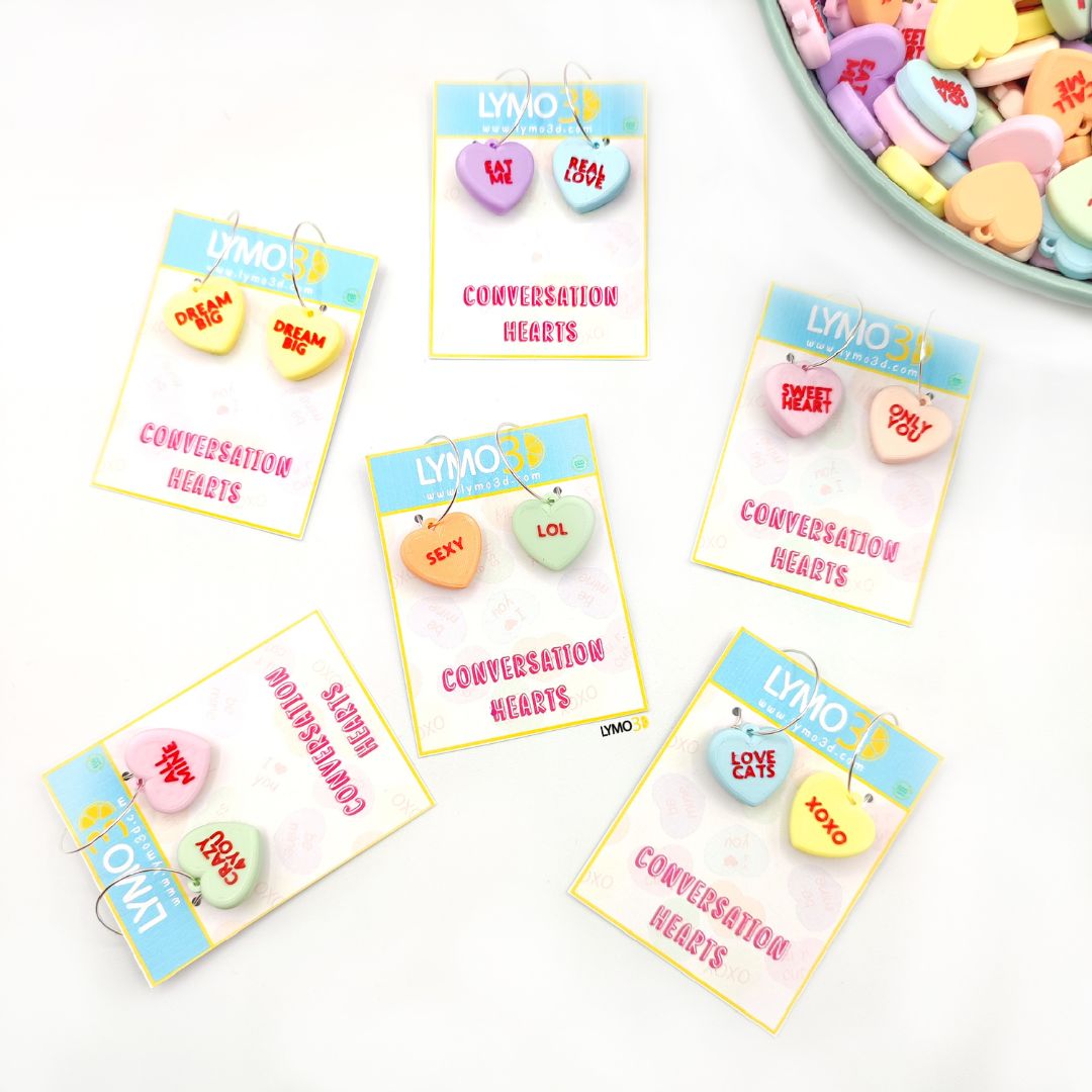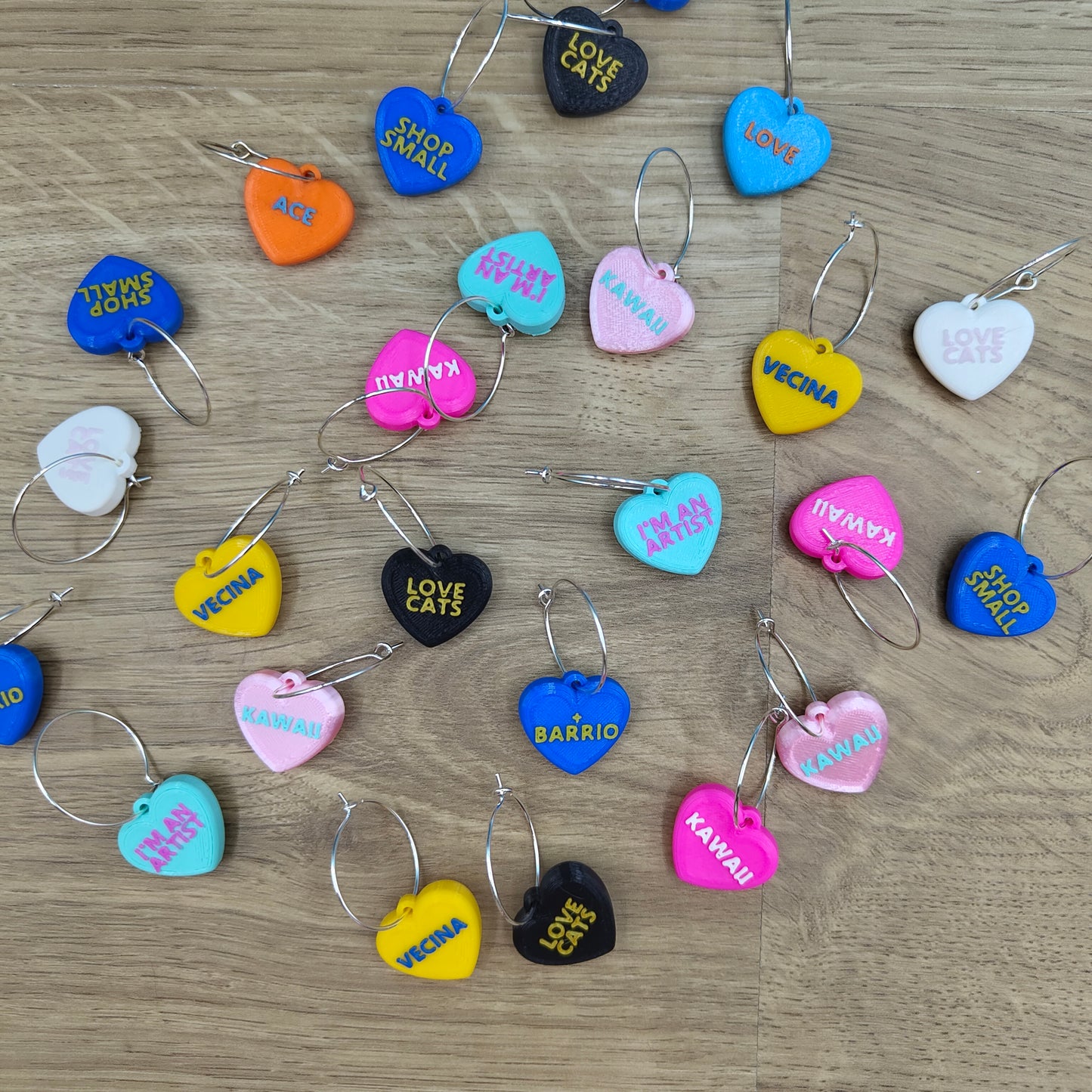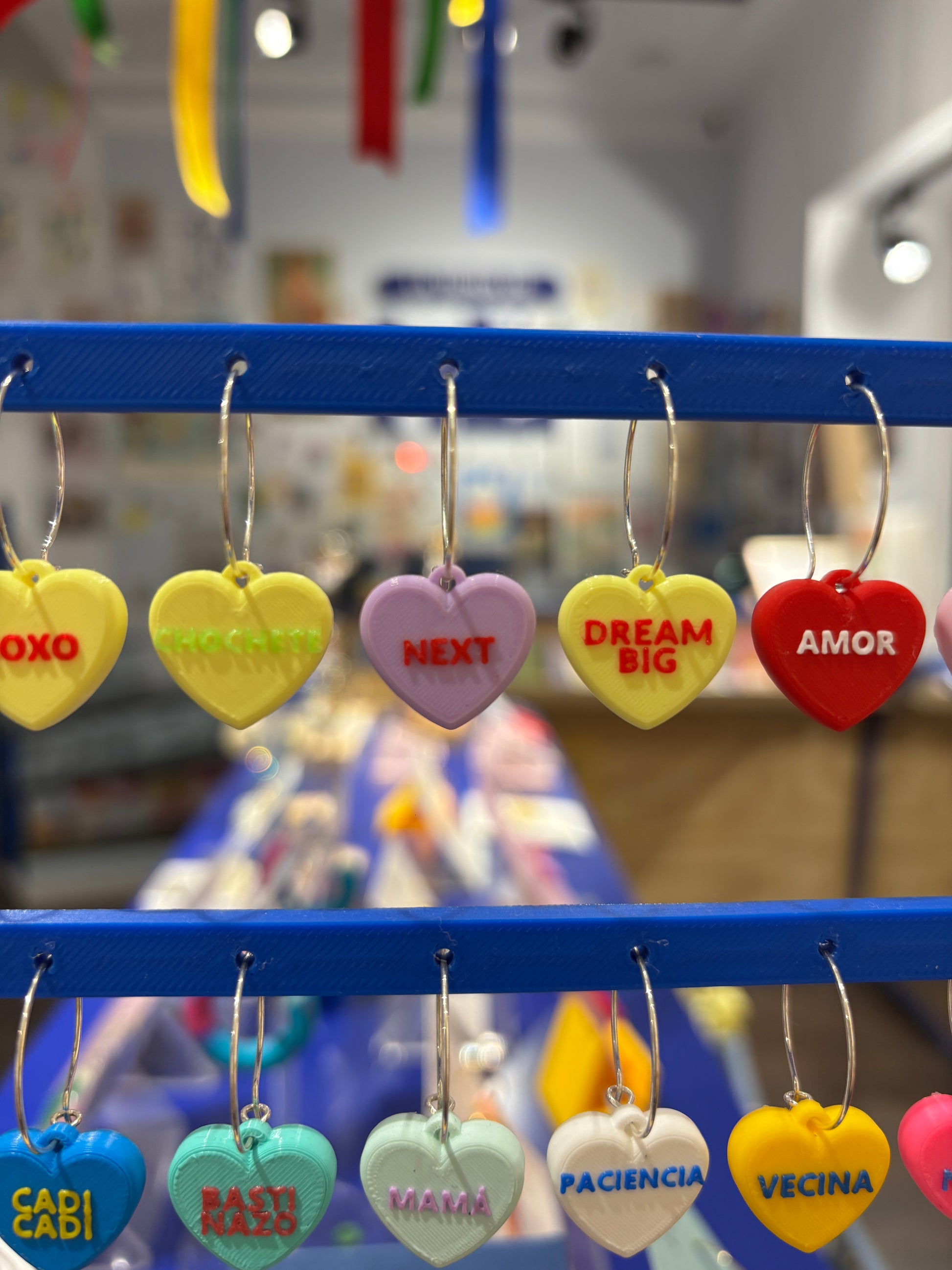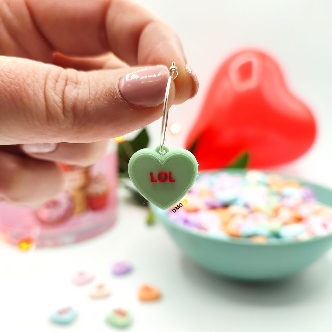Pendientes rollo los Candy Hearts de cereales que son corazones y encima tienen frases de toooo!!