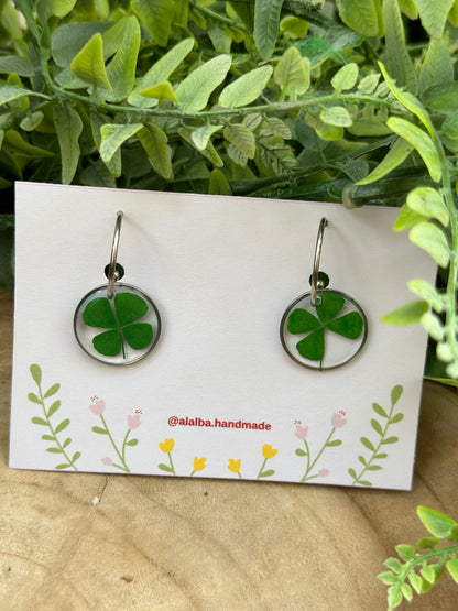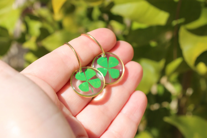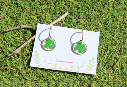 - 👉 Pendientes hechos a mano con tréboles encapsulados.