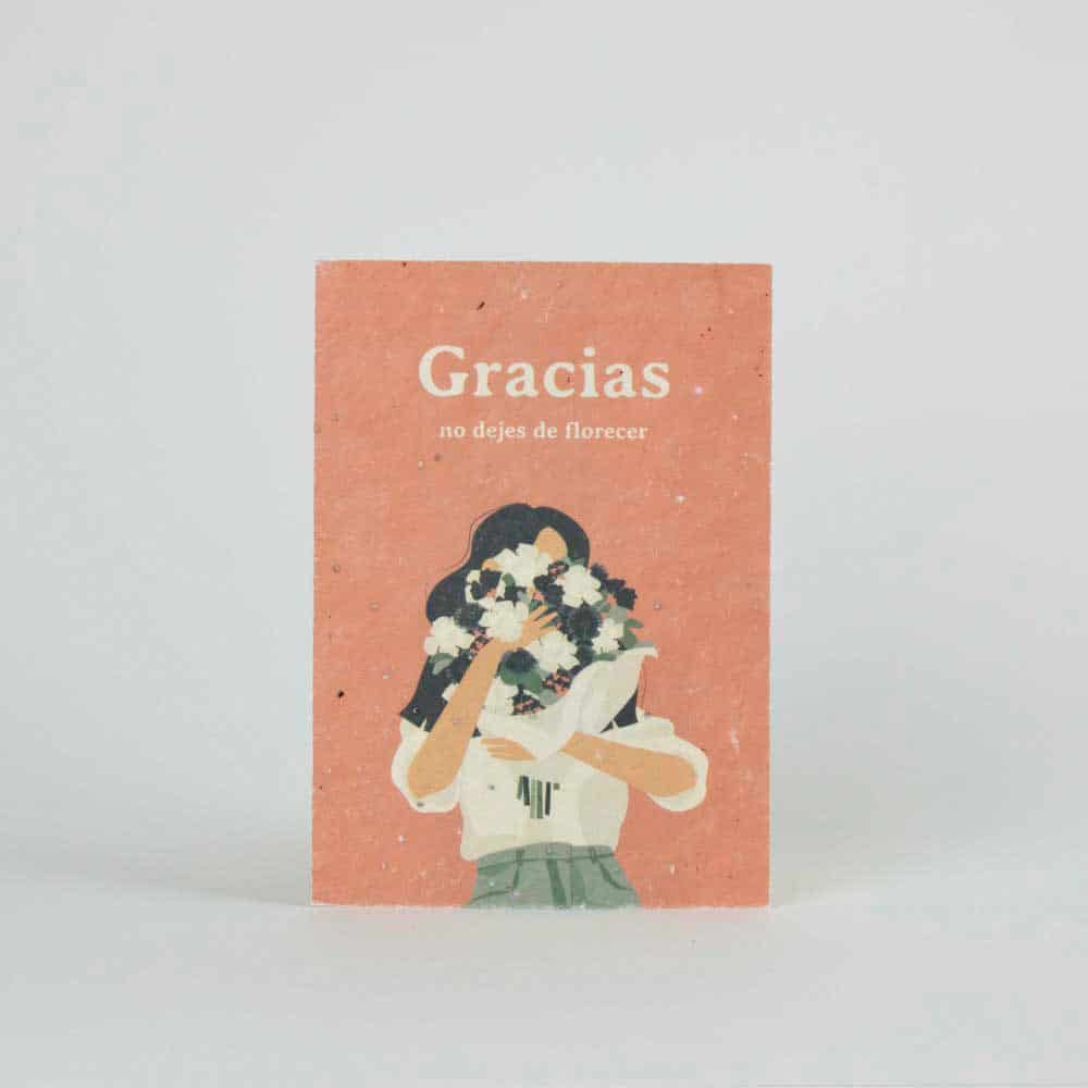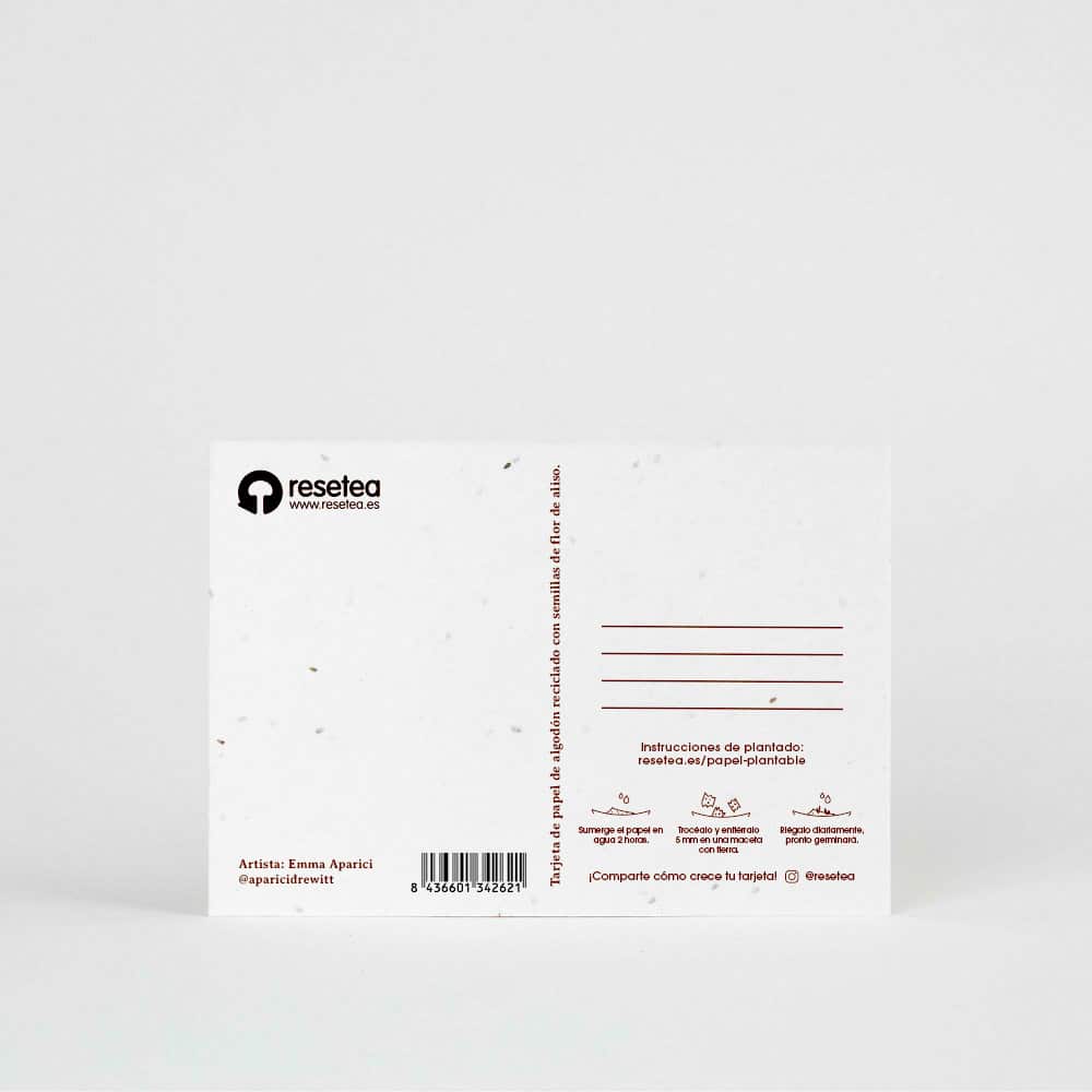 Agradece a esa amiga que te riega cada vez que os juntáis y no paráis de crecer... porque esta postal está impresa en papel de algodón reciclado con semillas de flor de aliso.