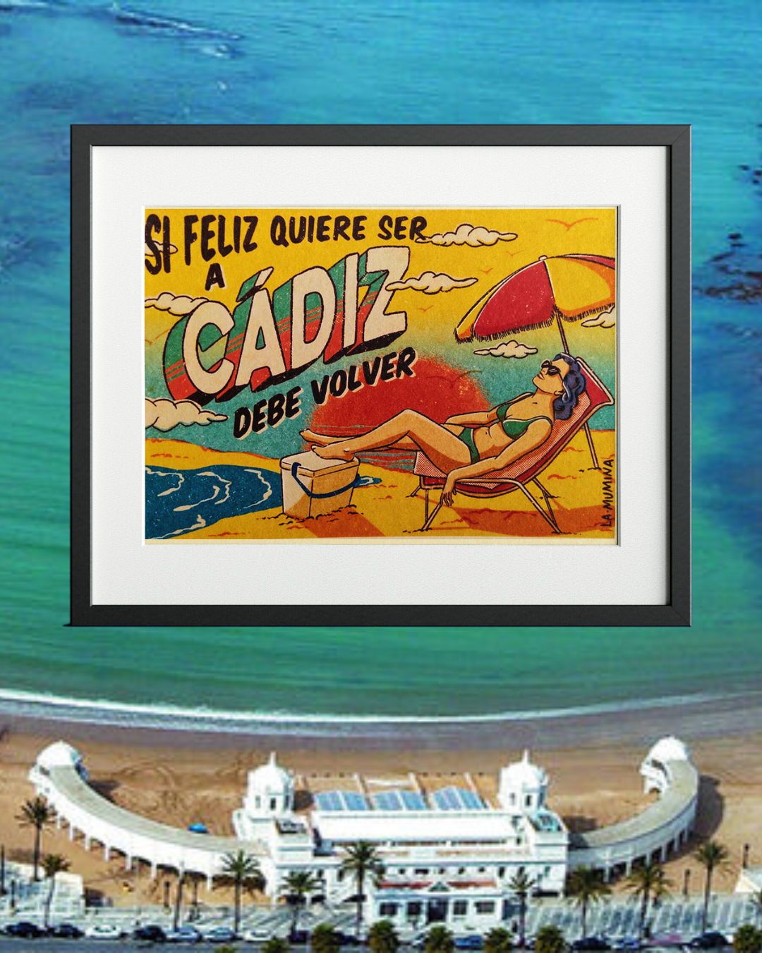 Postal Si feliz quiere ser, a Cádiz debe volver - La Mumina x La Vecina