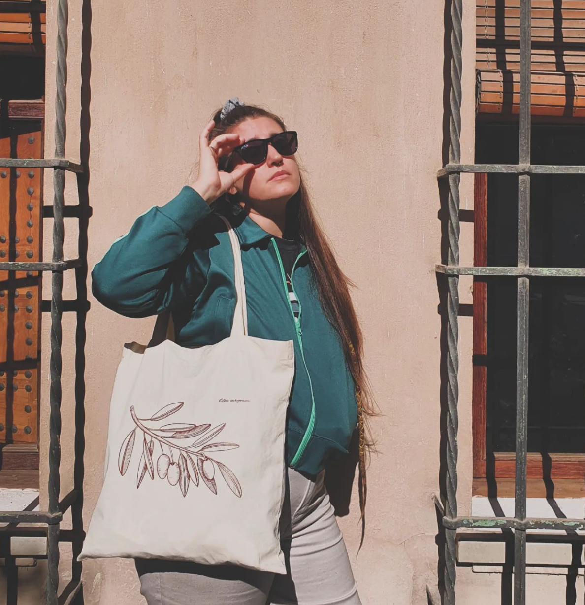 Con esas ramas de olivo impresas a mano con tintas al agua, es perfecta para llevar todas tus cositas de forma eco-friendly.